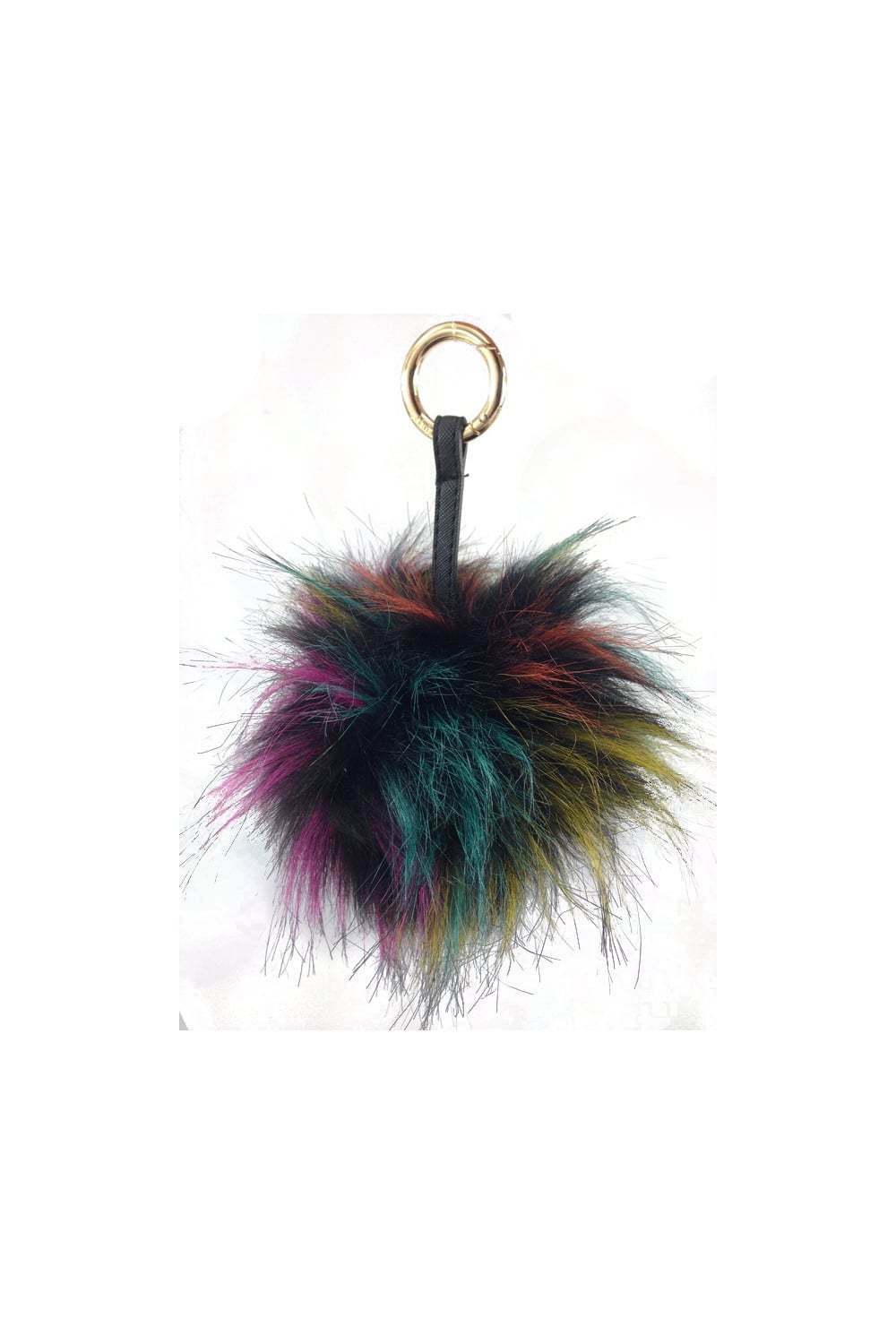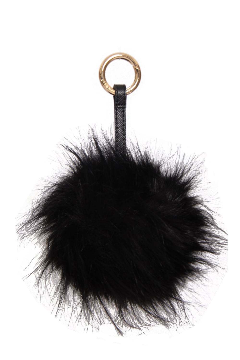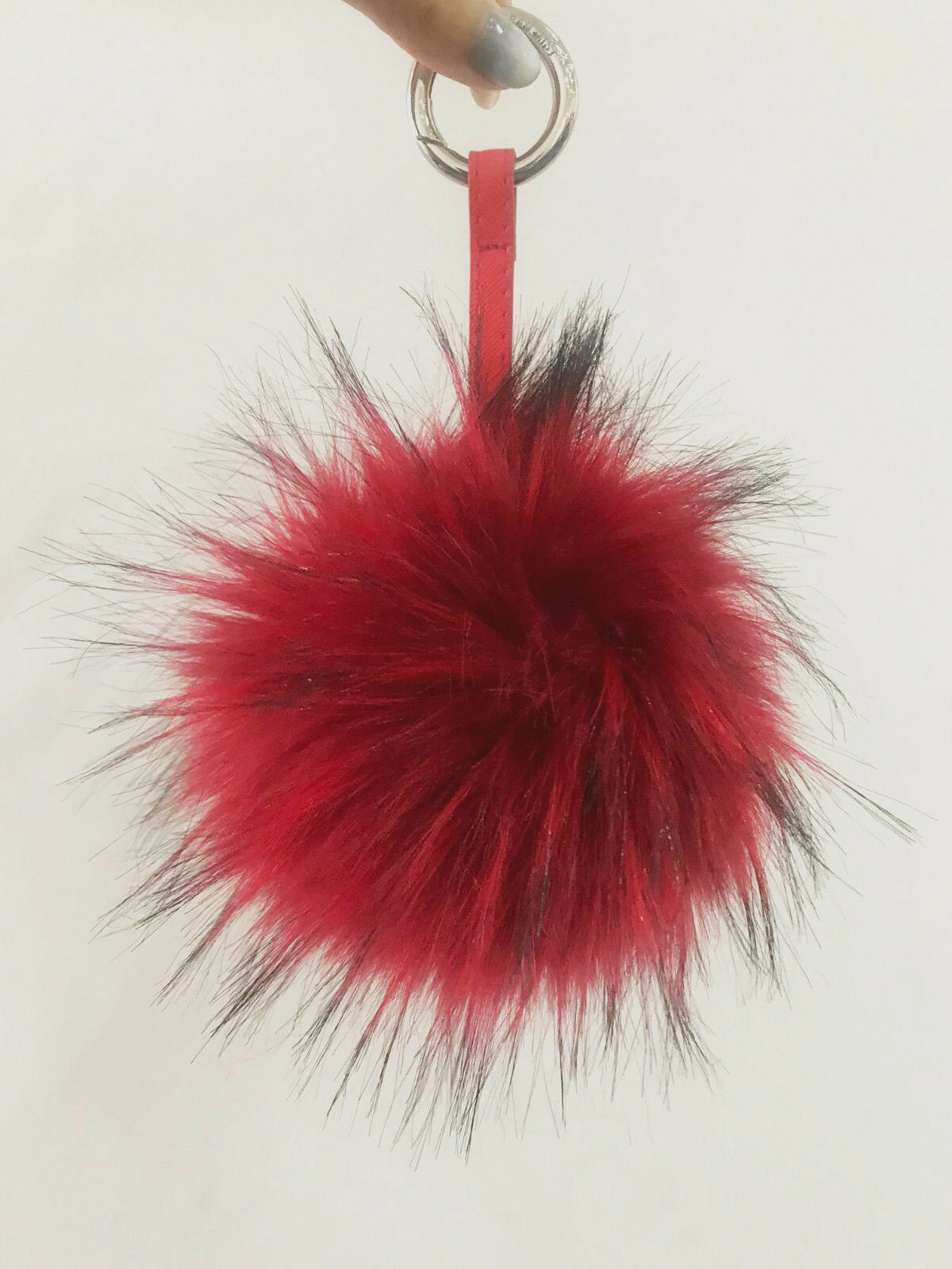 FAUX Raccoon Pom Pom Keyring Charm with Leather Strap