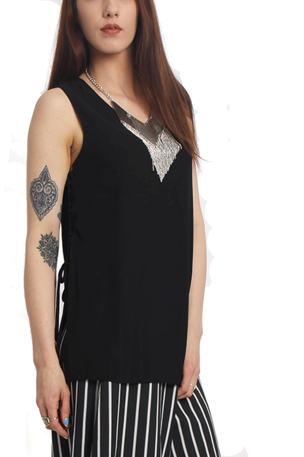 V-neck Tie Up Split Side Top