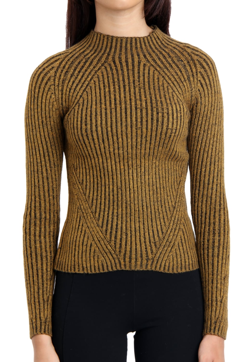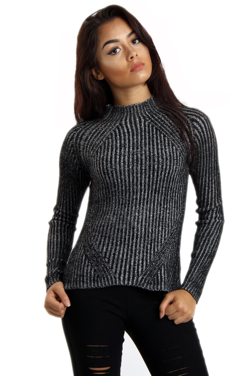 Knitted Ribbed Funnel Neck Jumper