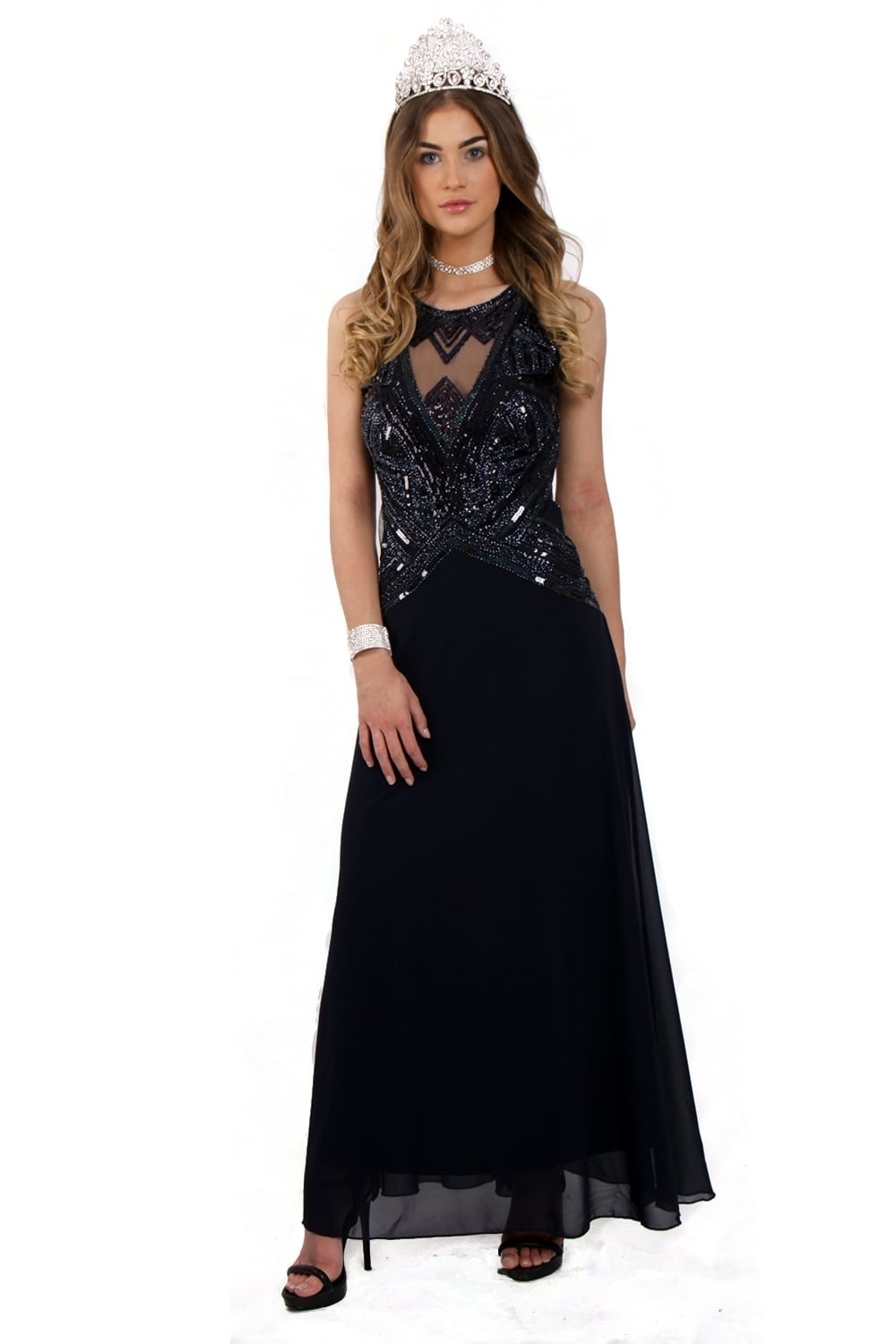 Navy Embellished Bodice Dress by URBAN MIST