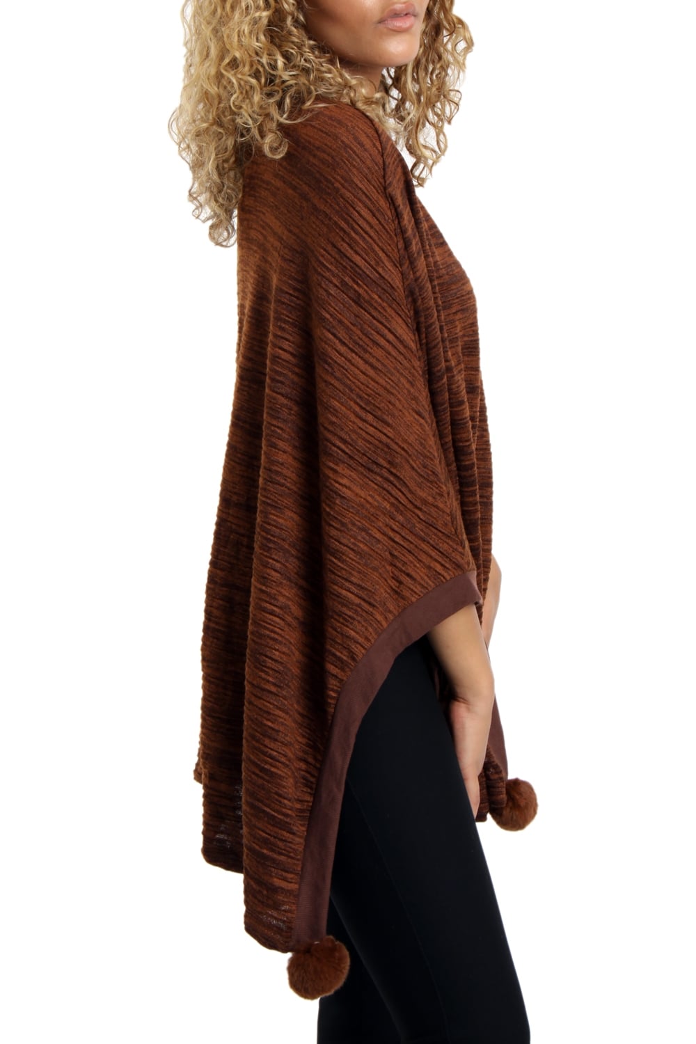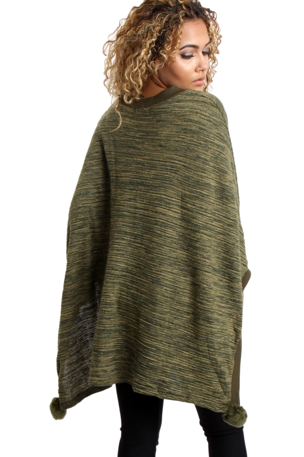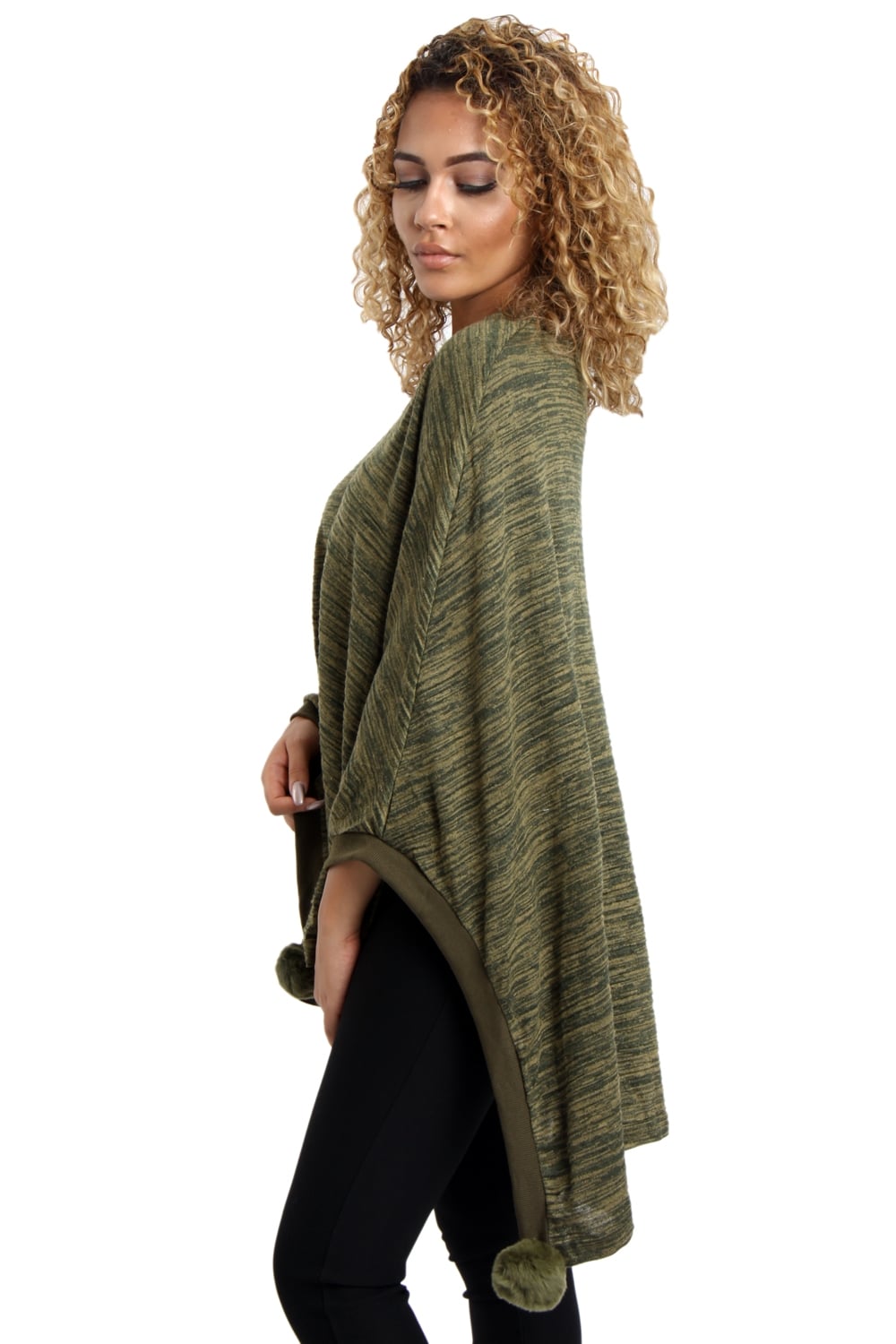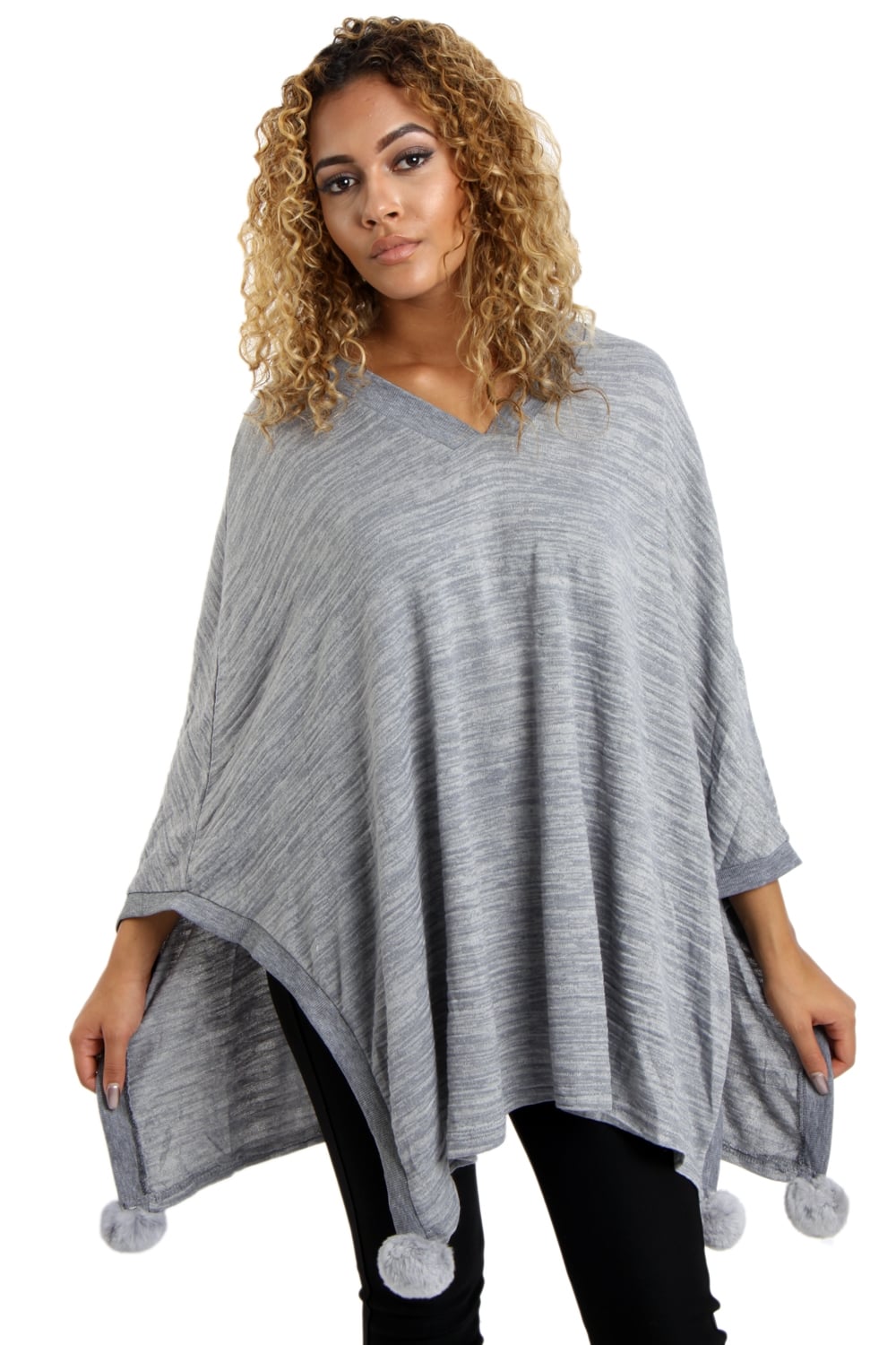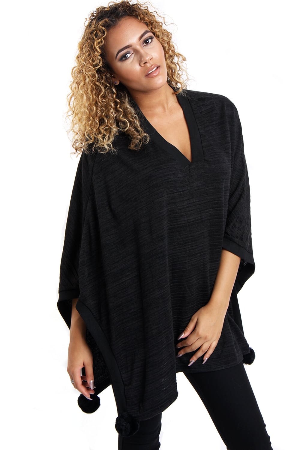 Oversized Pom Pom Poncho Top
