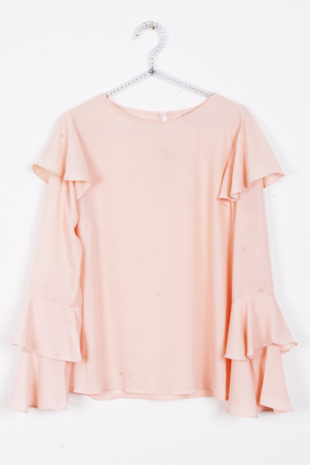 Round Neck Ruffle Layered Sleeve Blouse Top