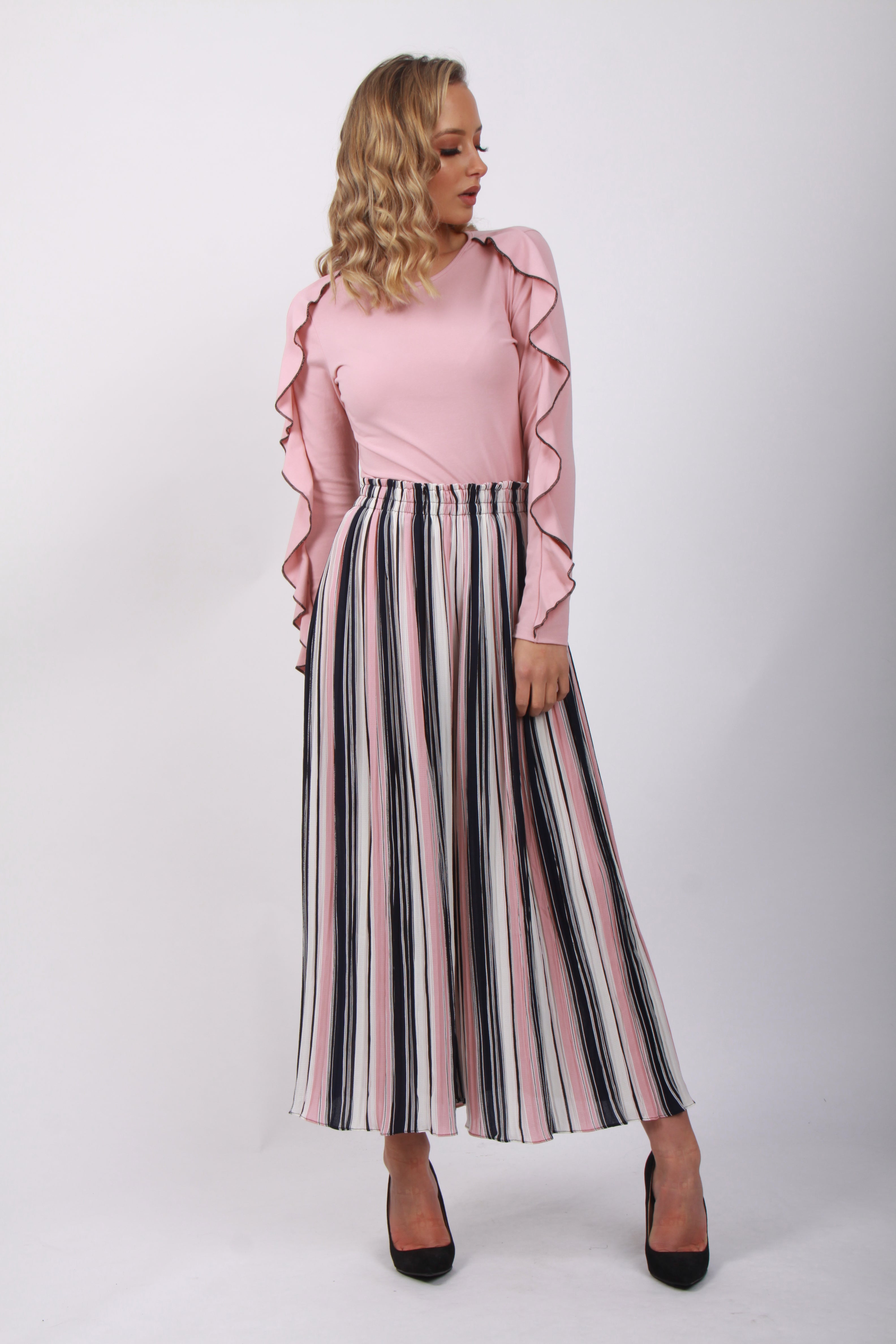Ruffle Detail Long Sleeve Overlocked Edge Jumper Top