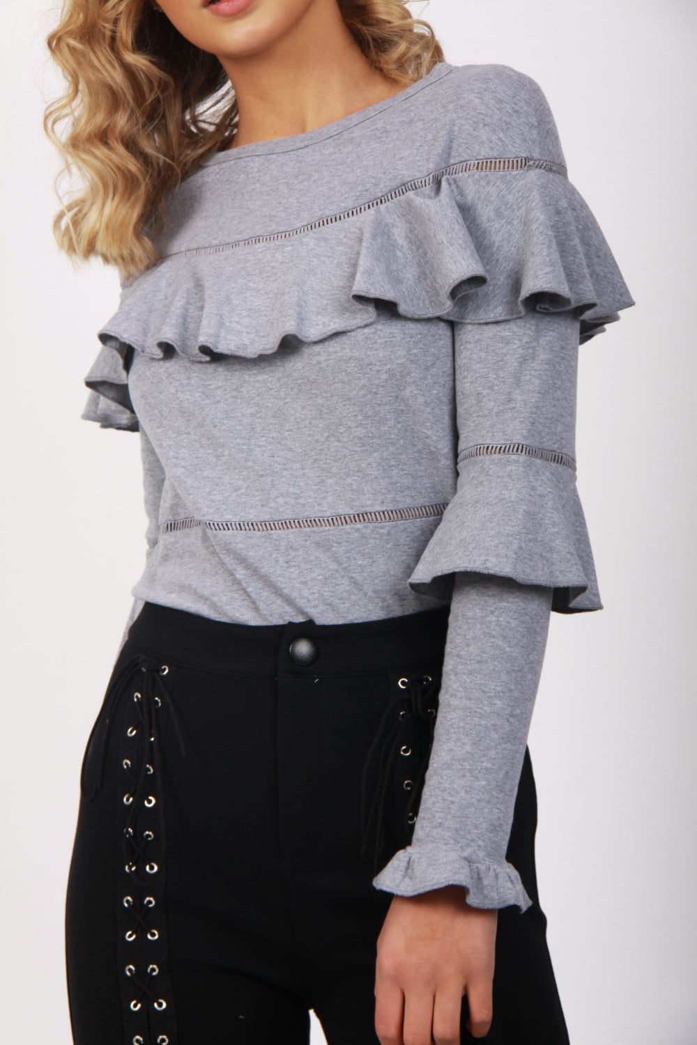 Soft Stretch Cotton Jersey Ruffle Jumper Top
