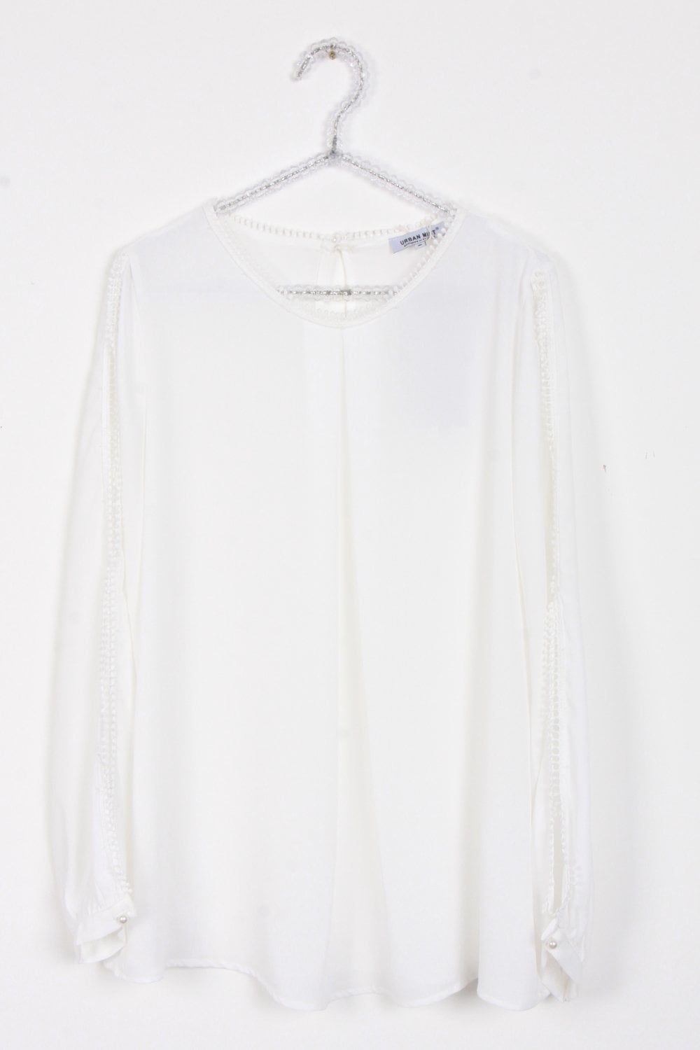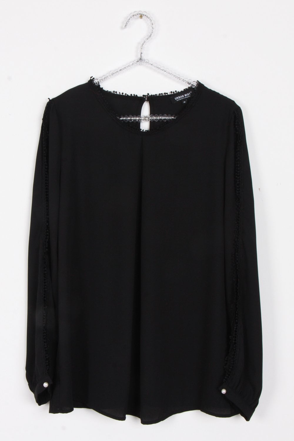 Lace Trim Split Arm Detail Floaty Blouse Top