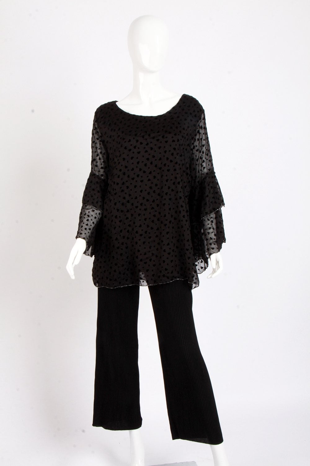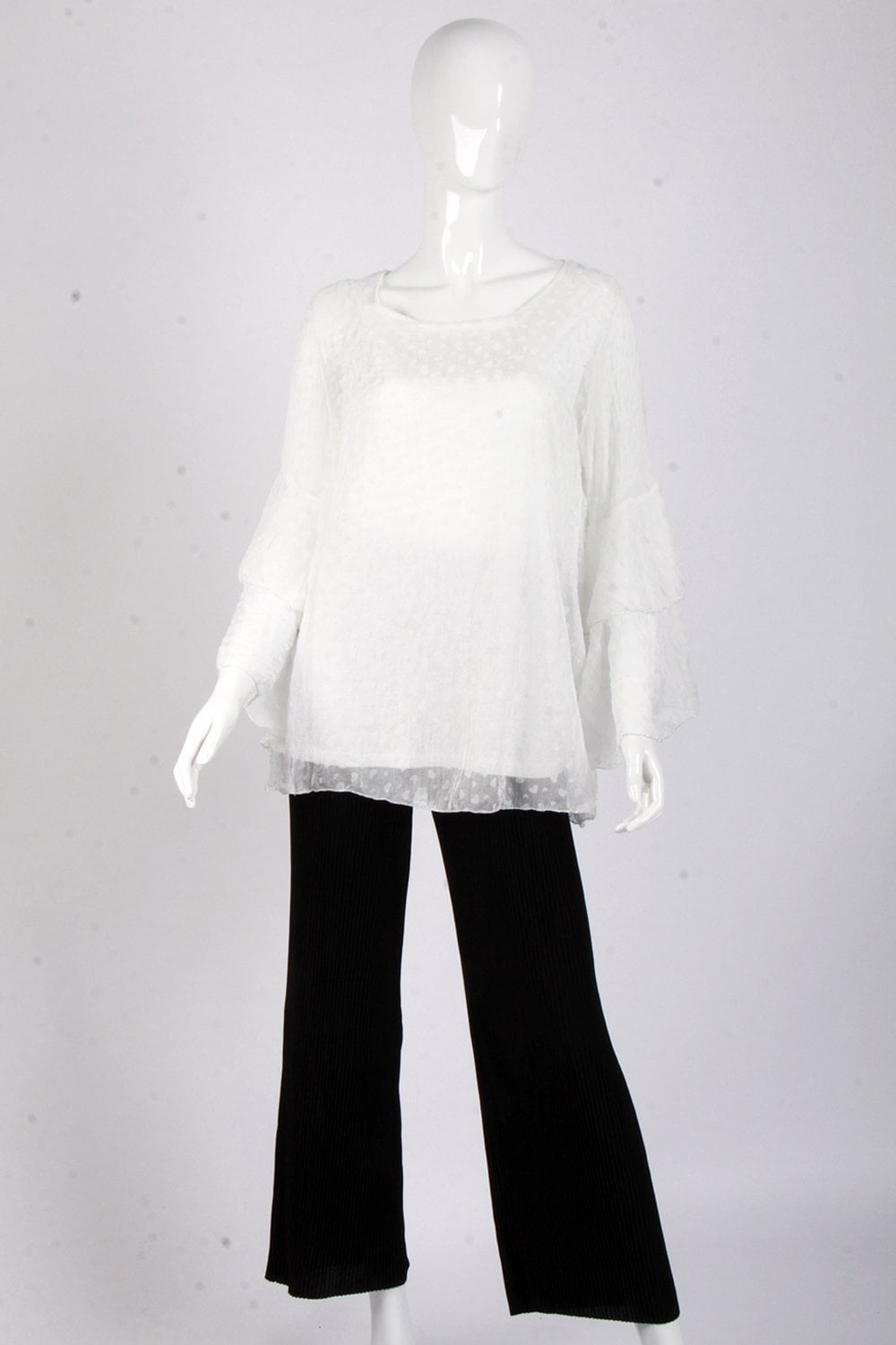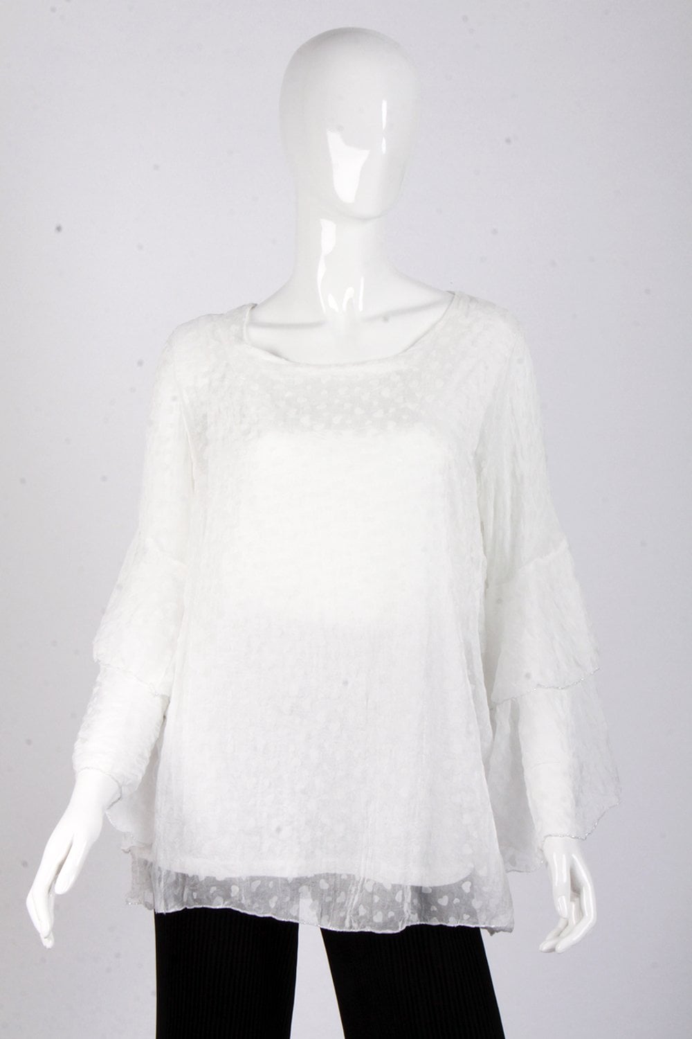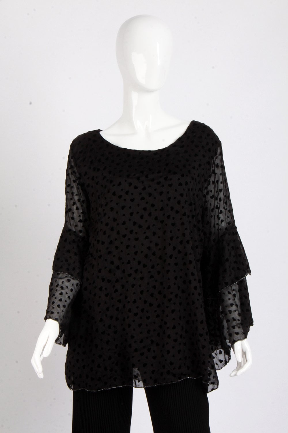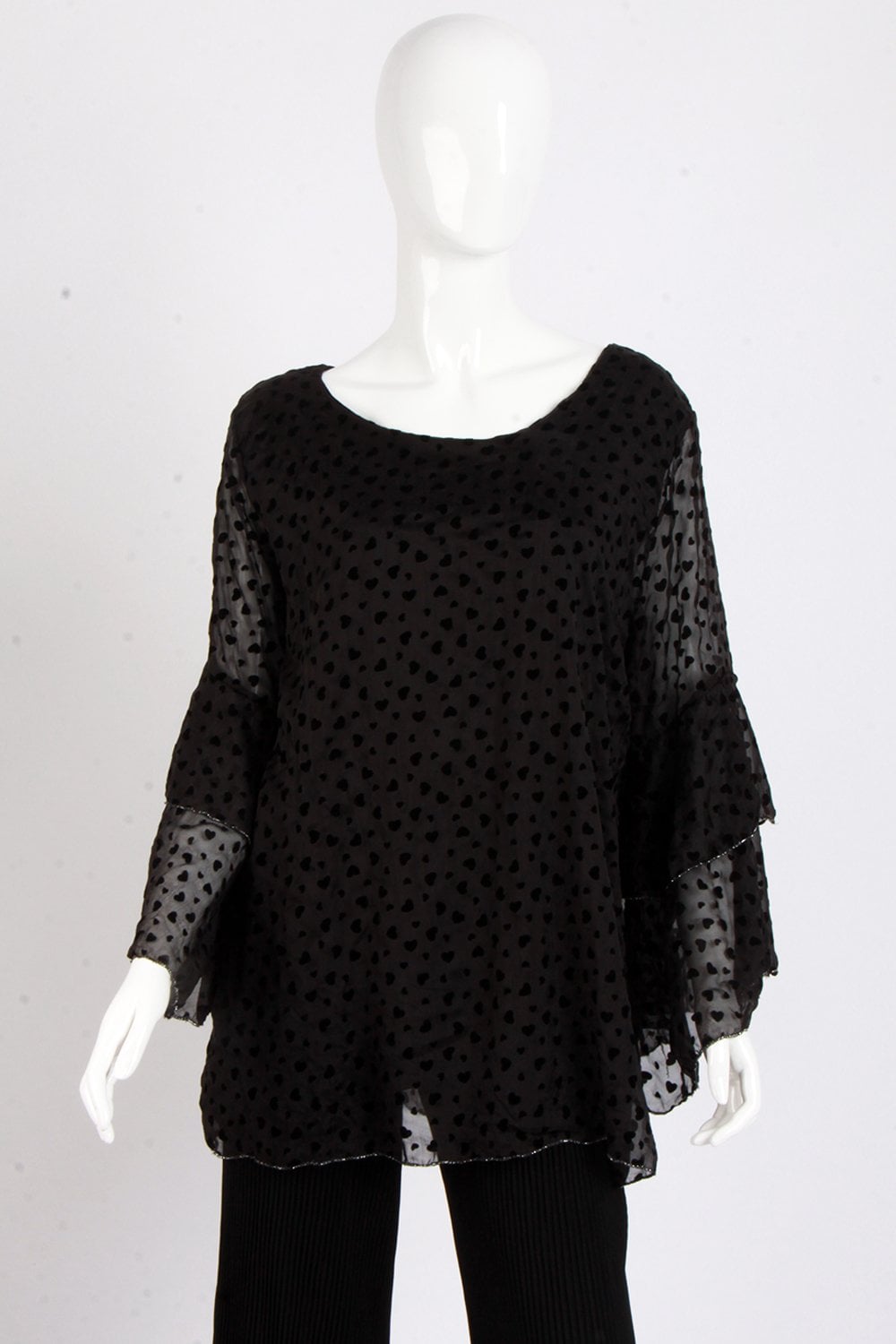 Floaty Ruffle Sleeve Small Heart  Embroidered Blouse Top