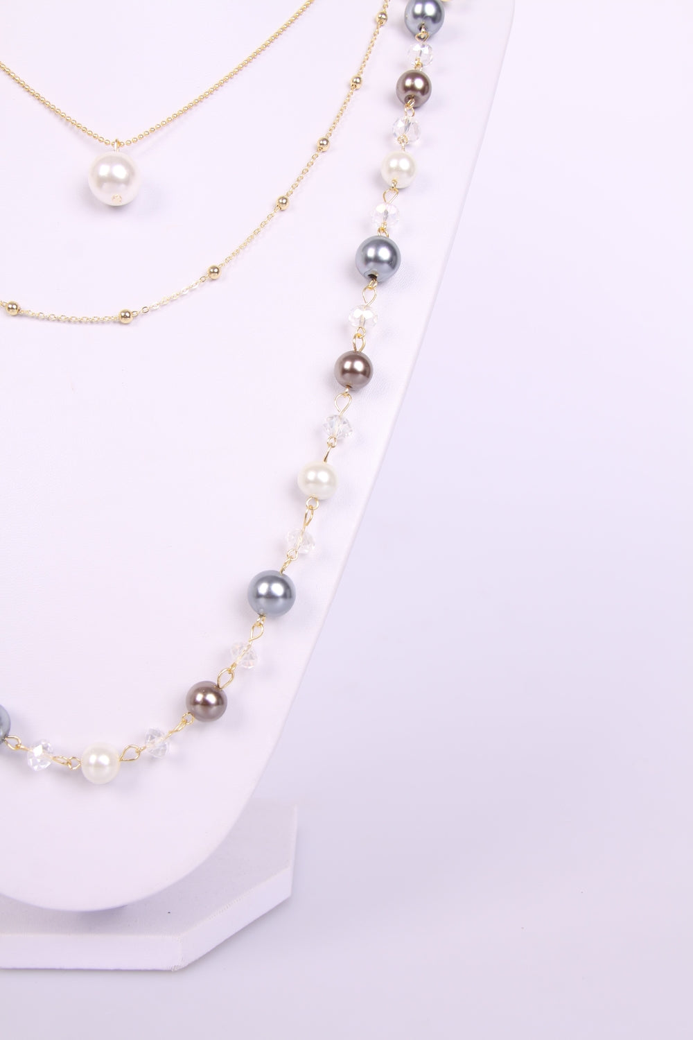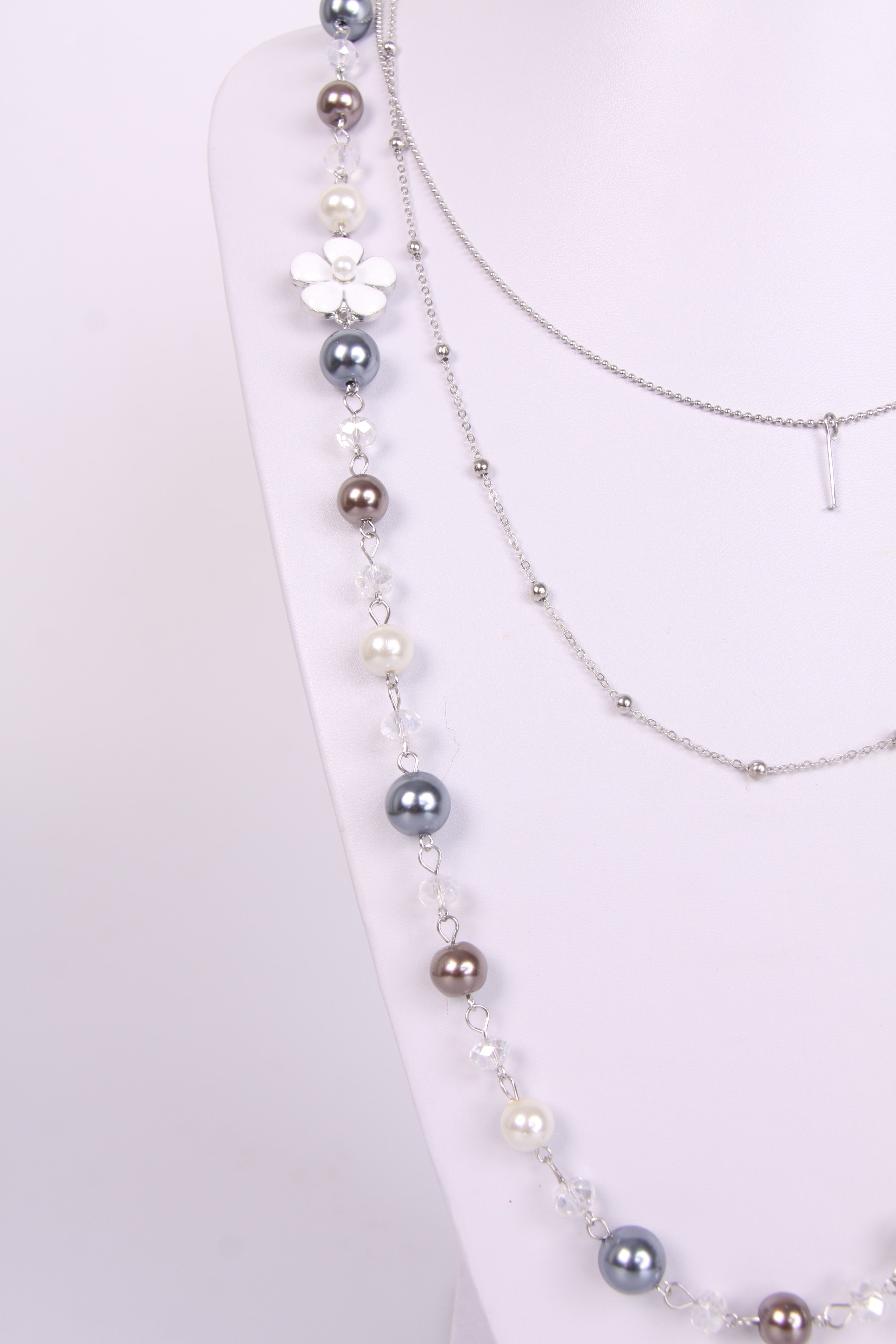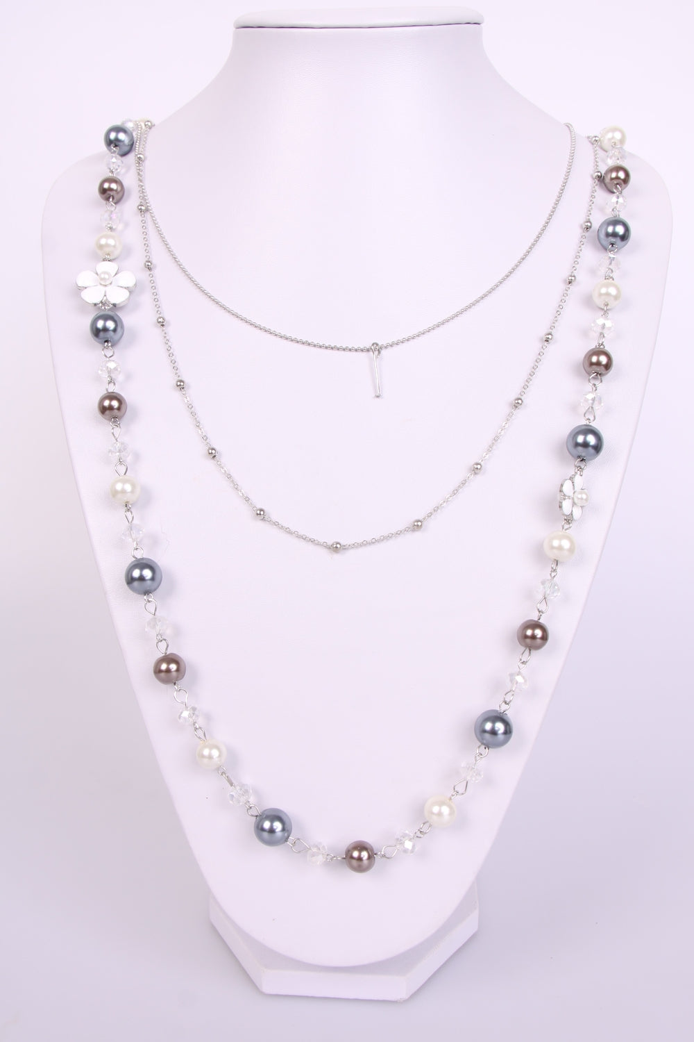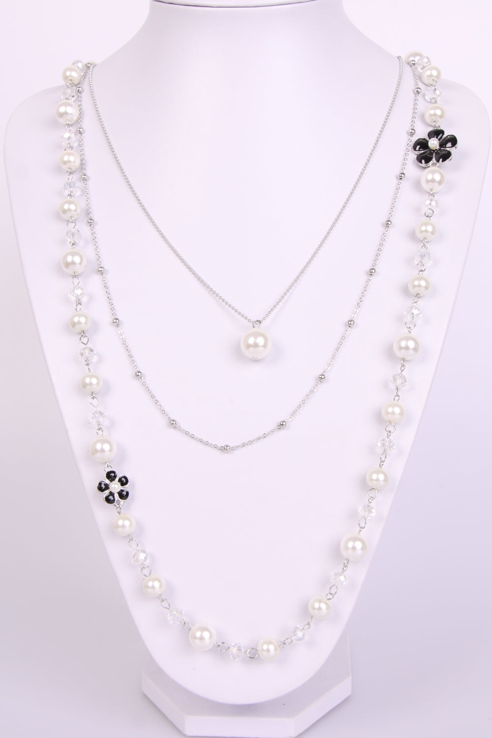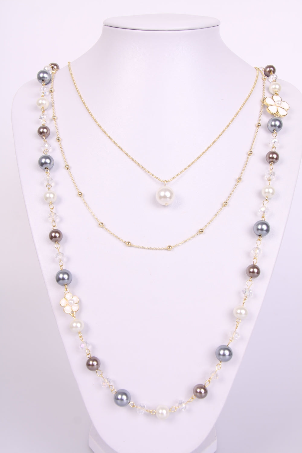 Trendy Pearl and Jewel Flower Layered Long Necklace