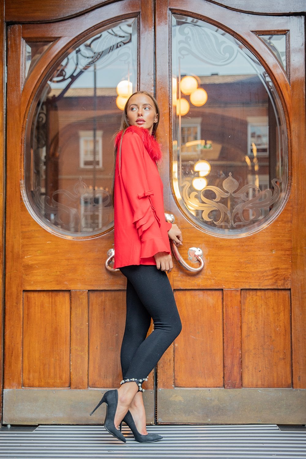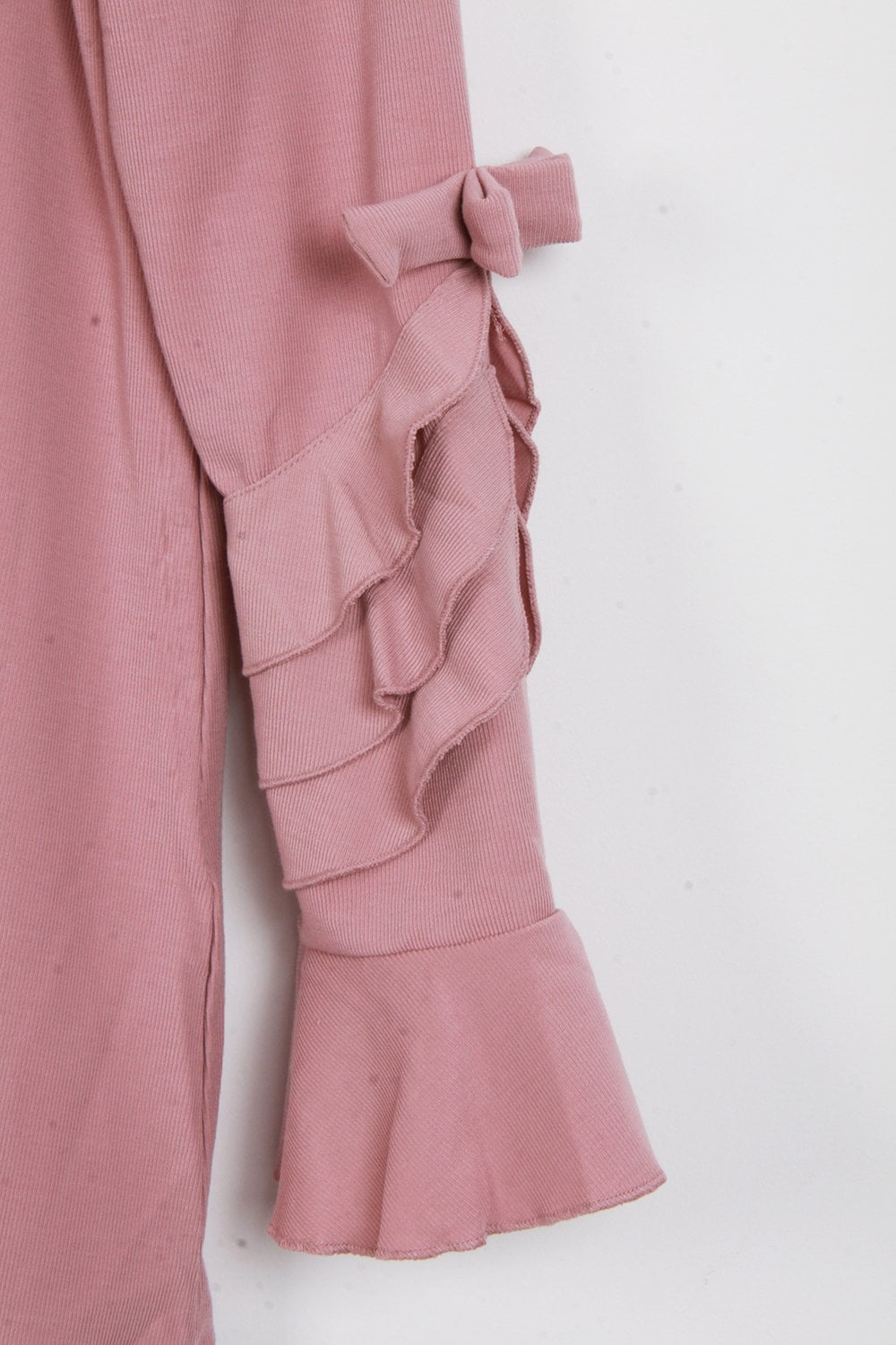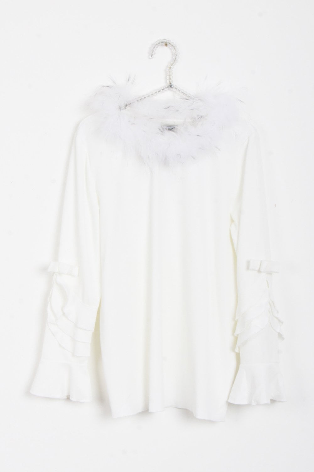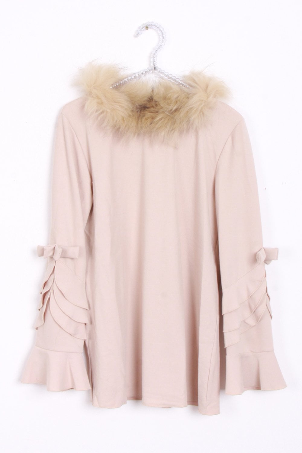 Ruffle Bow Detail Bell Sleeve Fur Trim Collar Knitted Jumper