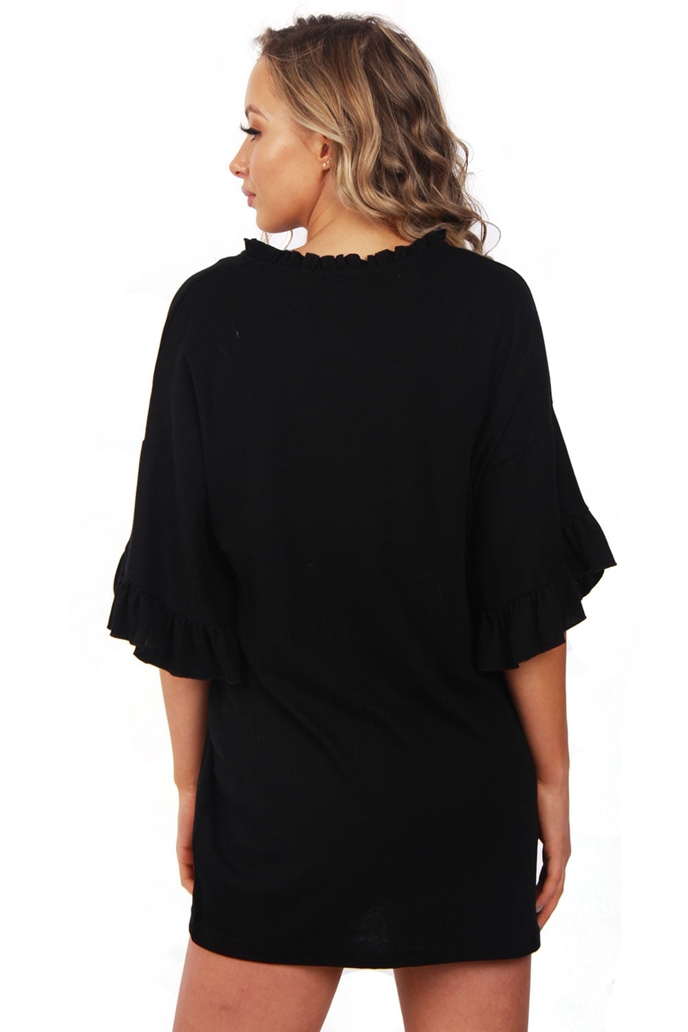 Oversized Ruffle Neck and Sleeve Summer Top Dress