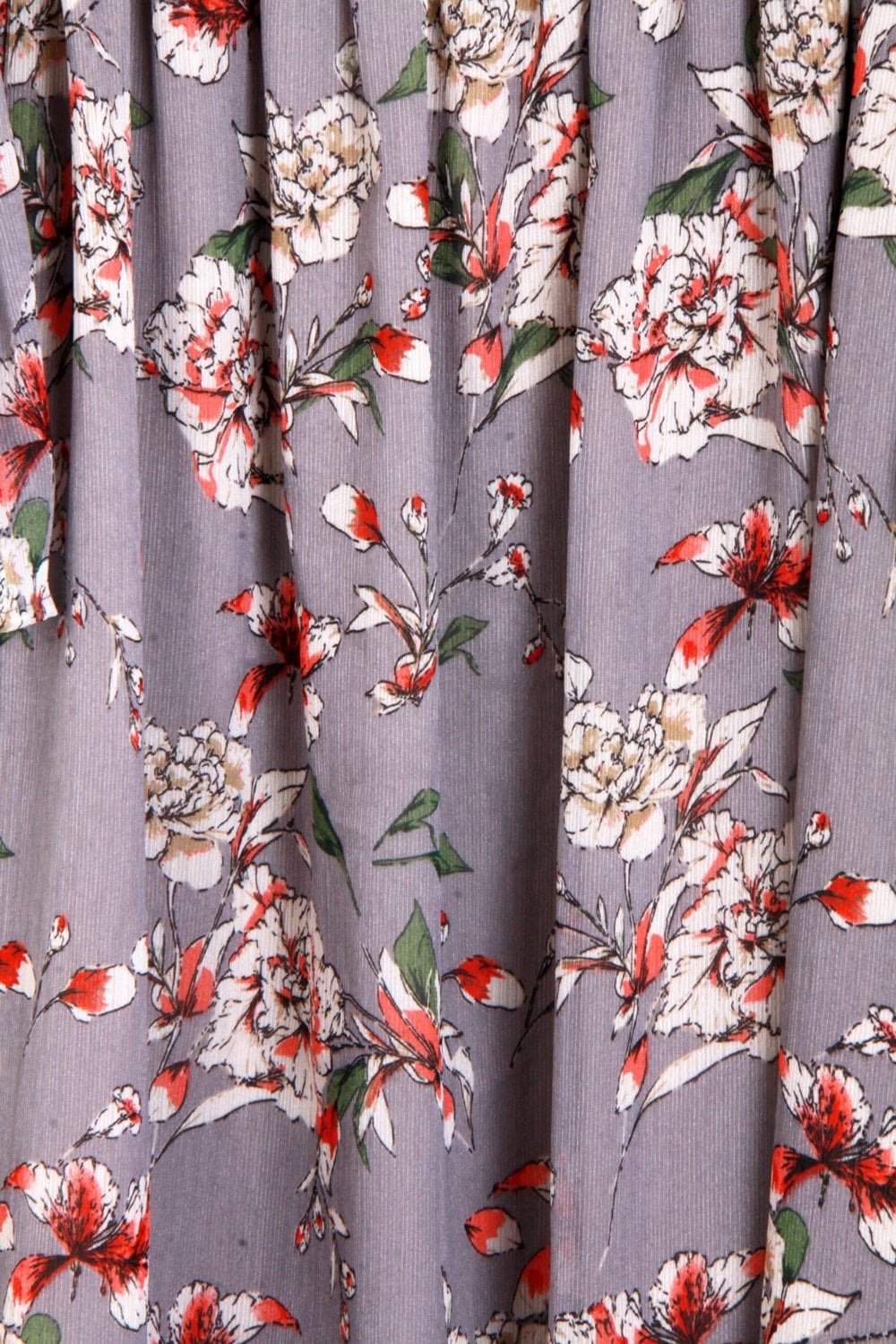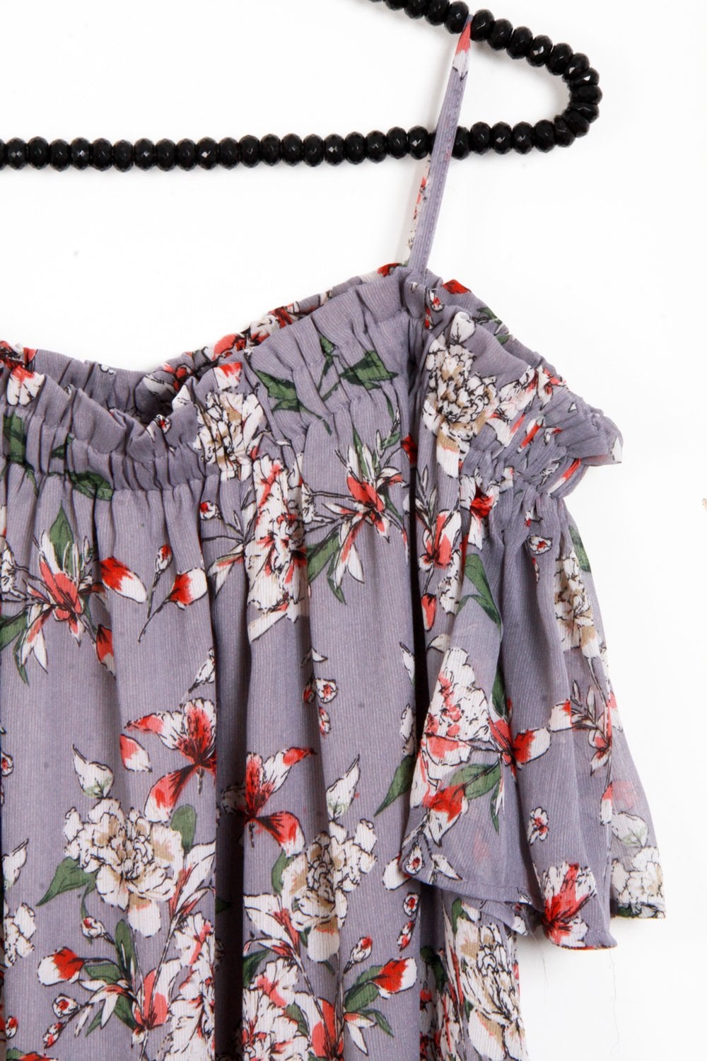 Grey Floral Print Chiffon Off Shoulder Summer Dress Top