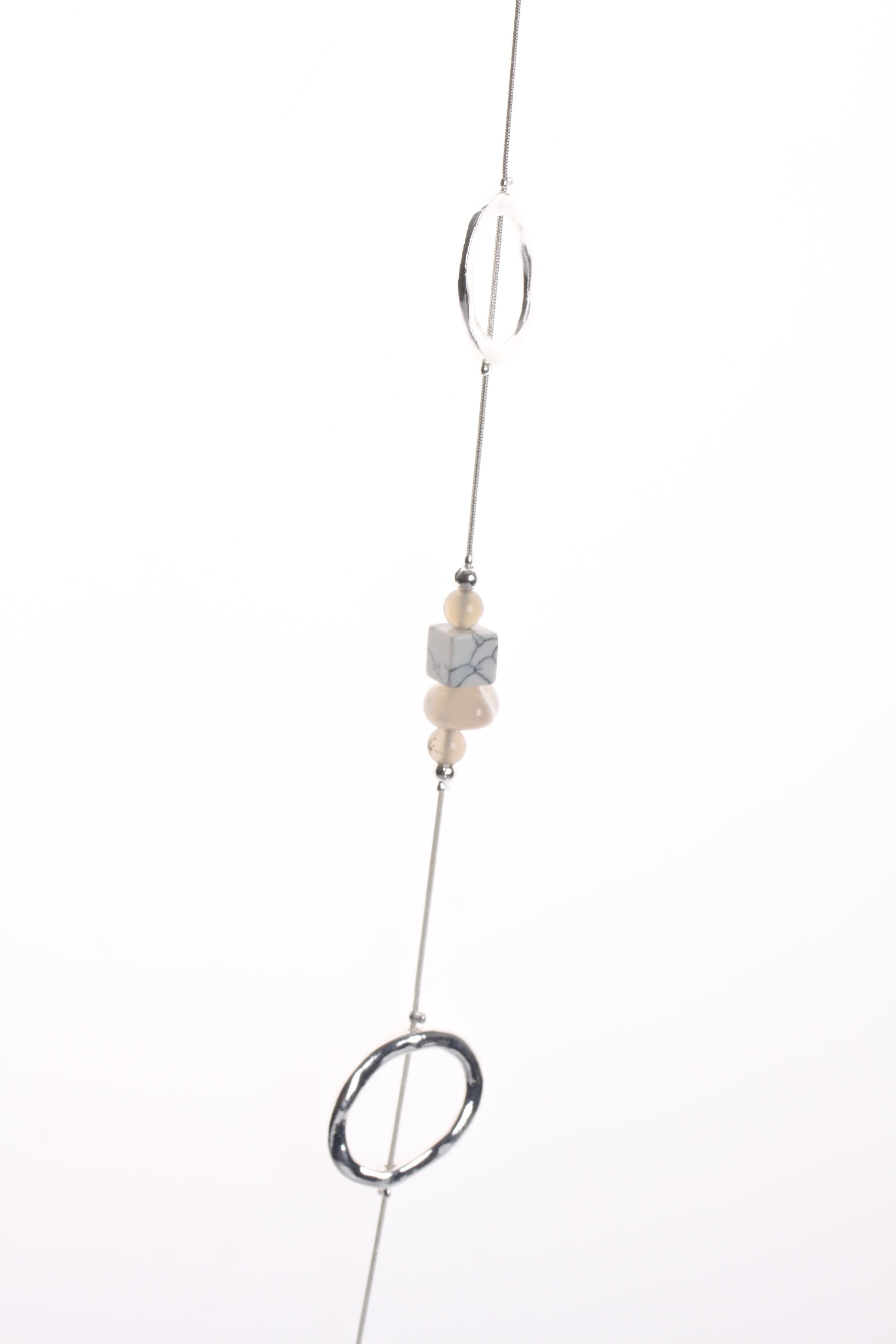 Hoop And Gem Stone Chain Long Necklace in Silver
