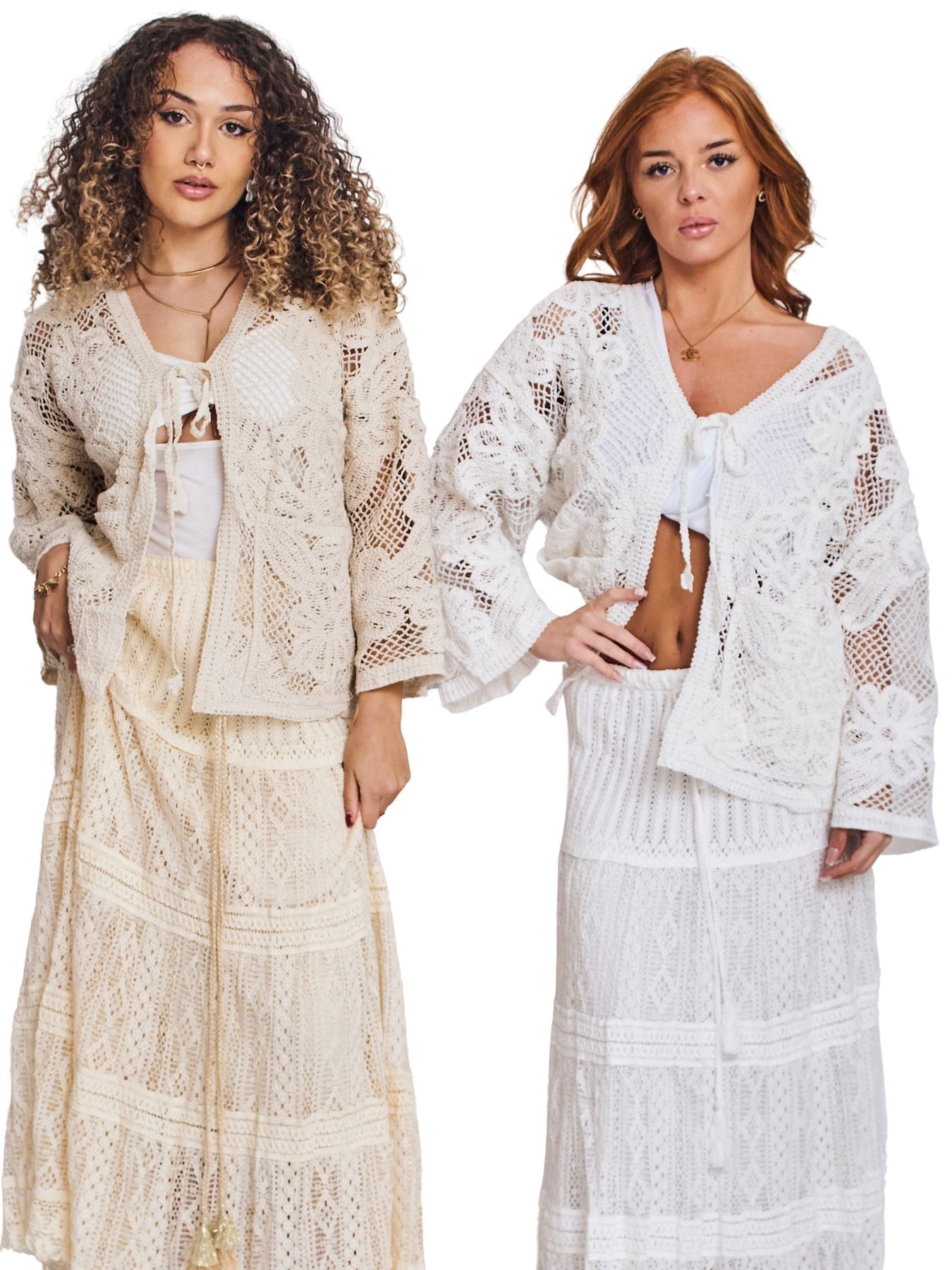 Wrap yourself in effortless elegance with this Italian crochet-knit cardigan, perfect for spring and summer layering. Crafted from lightweight cotton, this open-knit design allows breathability while offering a touch of cozy warmth. The V-neckline adds a flattering shape, while the long sleeves provide graceful coverage. Designed for plus-size women, its loose-fit silhouette drapes beautifully, ensuring all-day comfort. The delicate floral or leaf-like crochet pattern creates a feminine and intricate aesthetic, making this cardigan a standout piece. Functional front pockets enhance practicality, blending style with convenience. Whether worn over a camisole, dress, or paired with casual denim, this versatile layering piece elevates any outfit. The perfect balance of bohemian charm and casual sophistication, this Italian-inspired cardigan is a must-have for effortless seasonal styling.