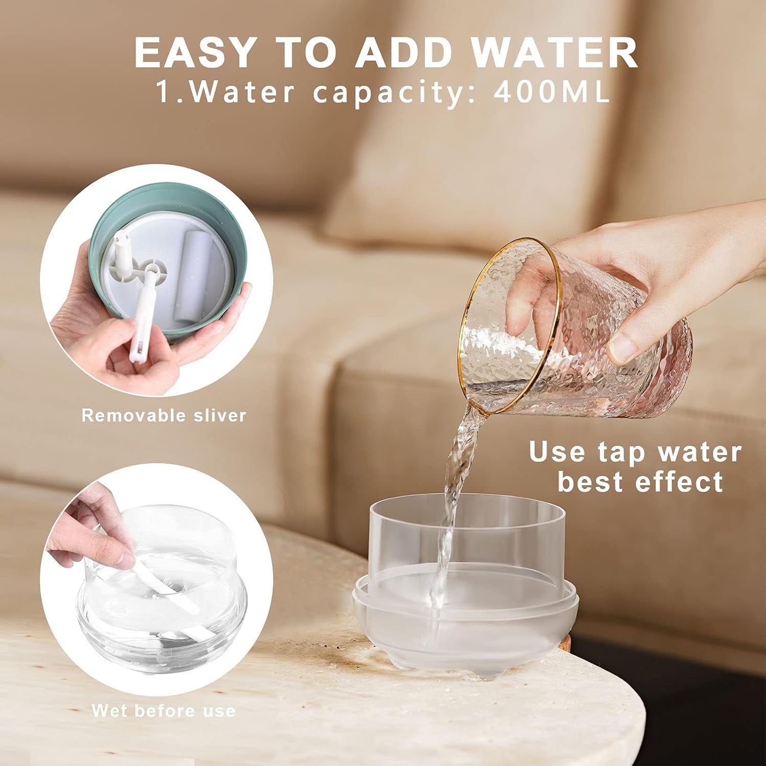 Small and lightweight, this humidifier is easy to carry and perfect for small spaces such as desks, bedrooms, or even cars.
