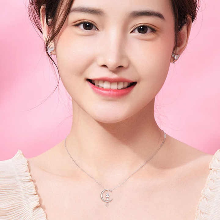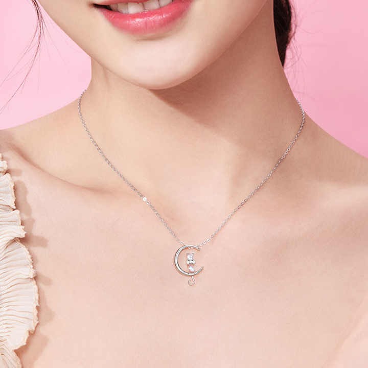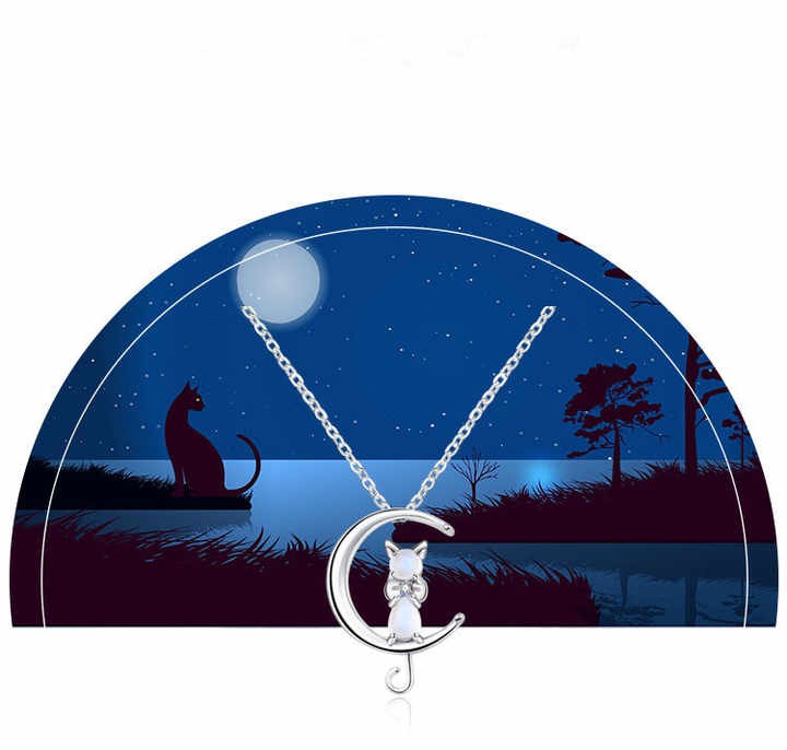 Add a magical touch to your style with this charming Moon & Cat Crystal Pendant Necklace. Designed for lovers of elegant and whimsical jewelry, this dainty piece features a graceful cat sitting on a crescent moon, beautifully accented with sparkling crystals.