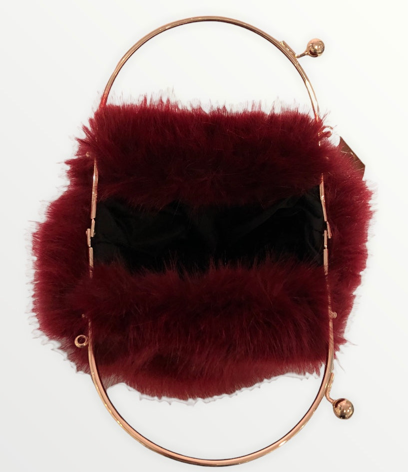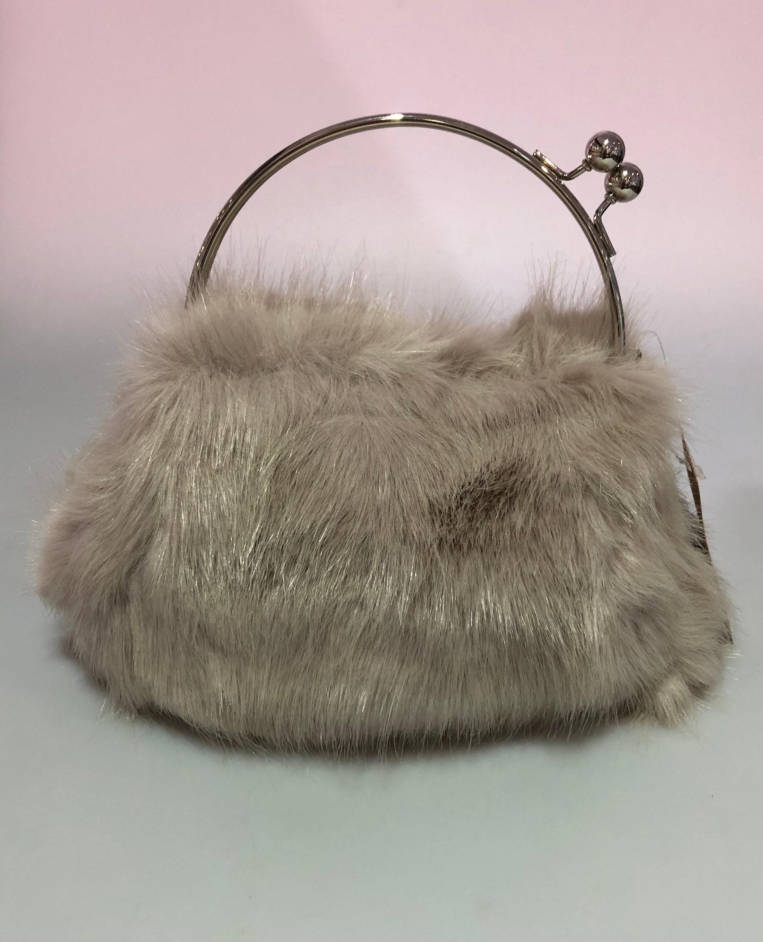 Faux Fur Purse/Bag with Ball Clasp Fastening