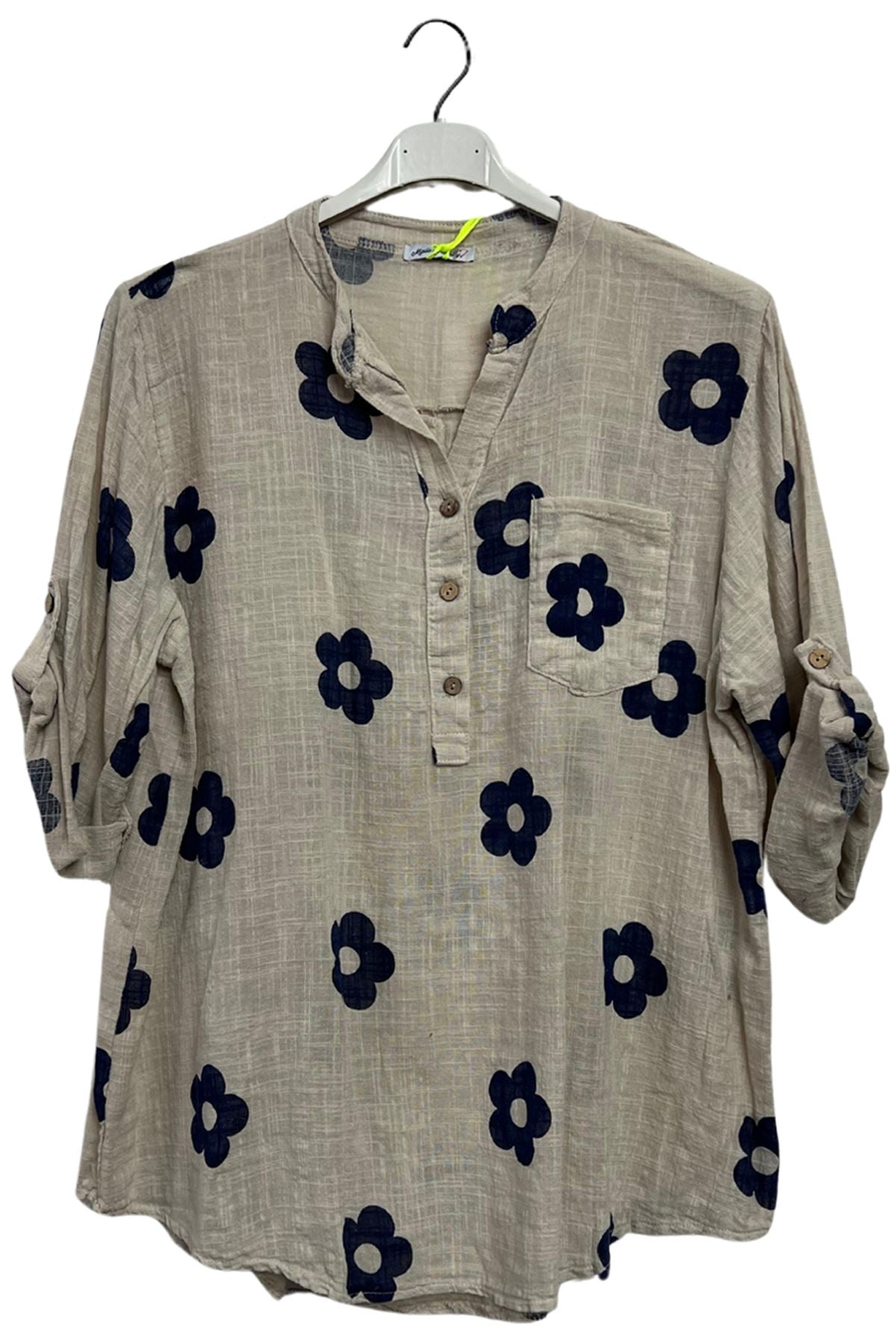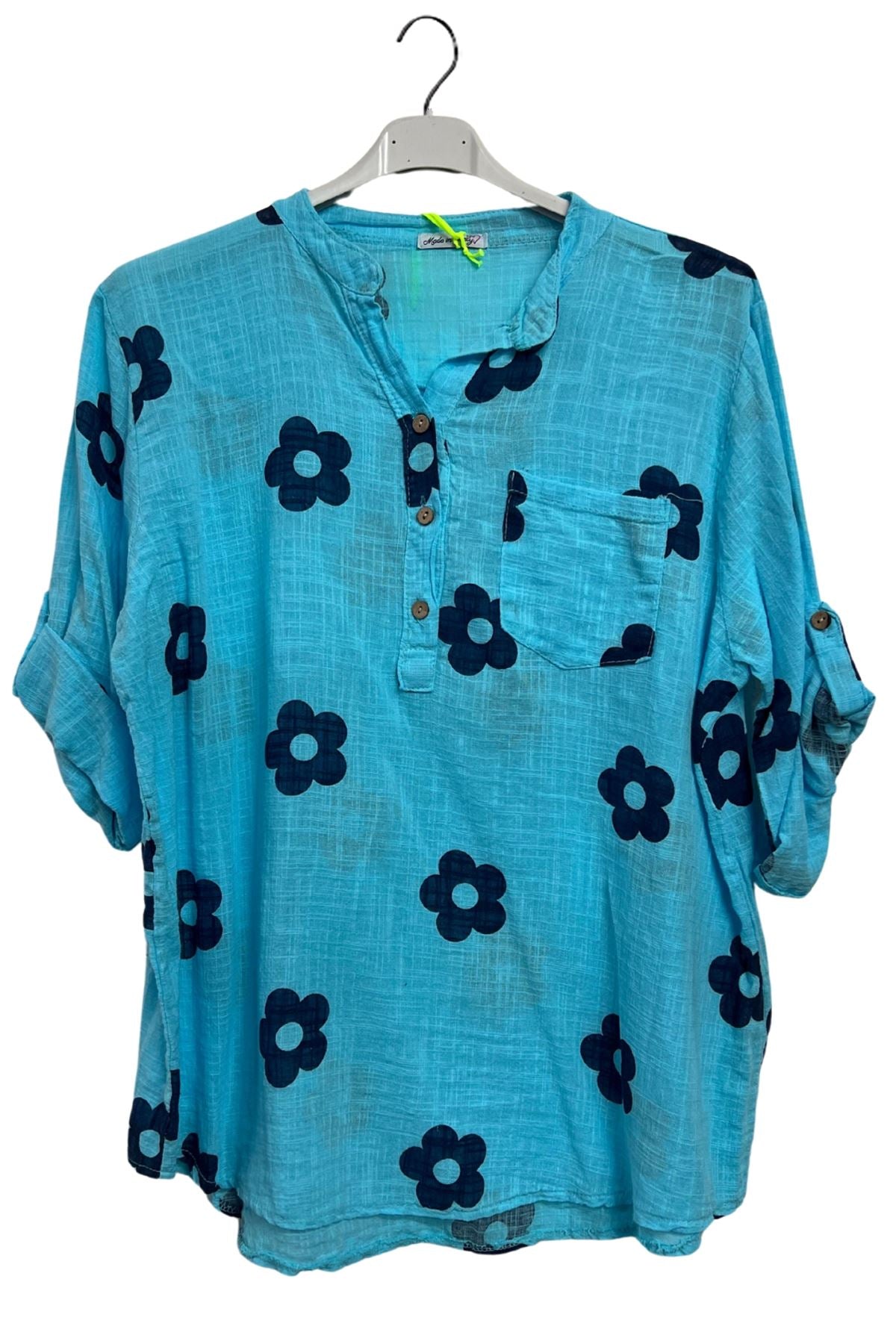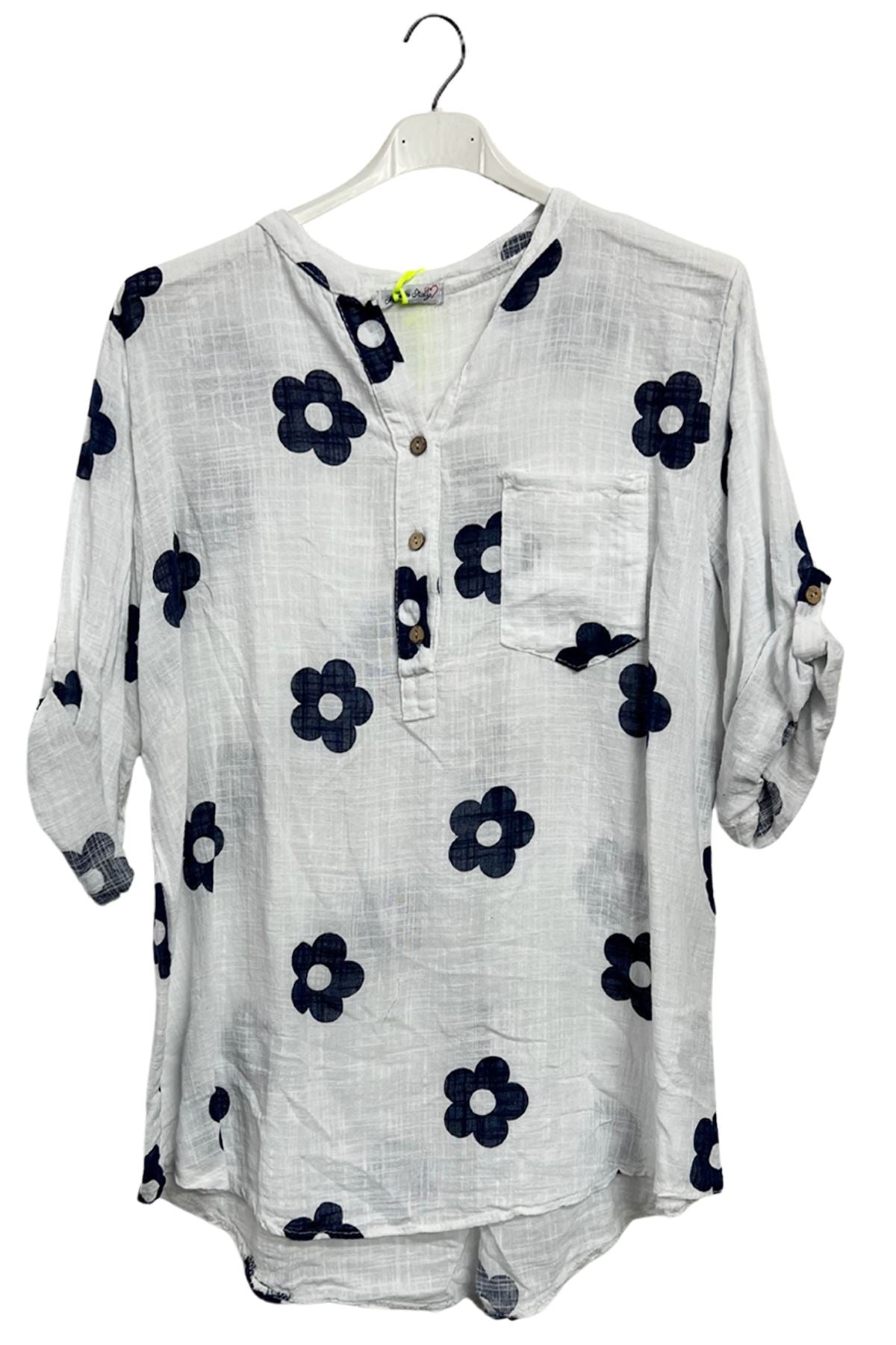 Elevate your casual wardrobe with this effortlessly stylish Italian cotton blouse, designed for plus-size women who appreciate both comfort and elegance. Crafted from lightweight, breathable cotton, this top is perfect for spring and summer days, keeping you cool while exuding charm. The delicate floral print adds a touch of femininity, while the buttoned neckline and classic collar create a polished yet relaxed look. Featuring long sleeves with a roll-up option, it allows for versatile styling—wear them down for sophistication or rolled up for a laid-back feel. The single chest pocket enhances the design with a functional yet stylish touch. Designed for a loose, relaxed fit, this blouse flatters all body types, making it ideal for pairing with jeans, linen trousers, or skirts. Whether you're heading to a casual brunch or a weekend getaway, this blouse offers the perfect blend of style, comfort, and effortless Italian fashion.