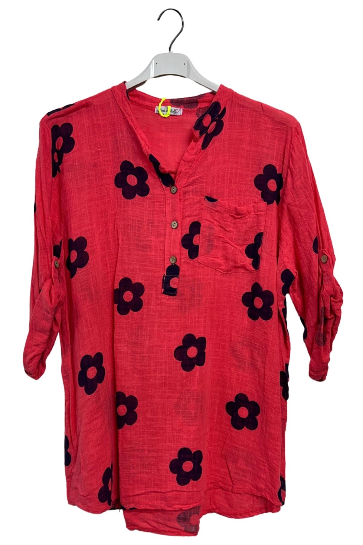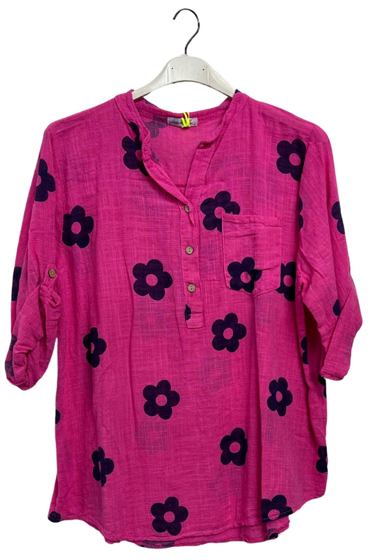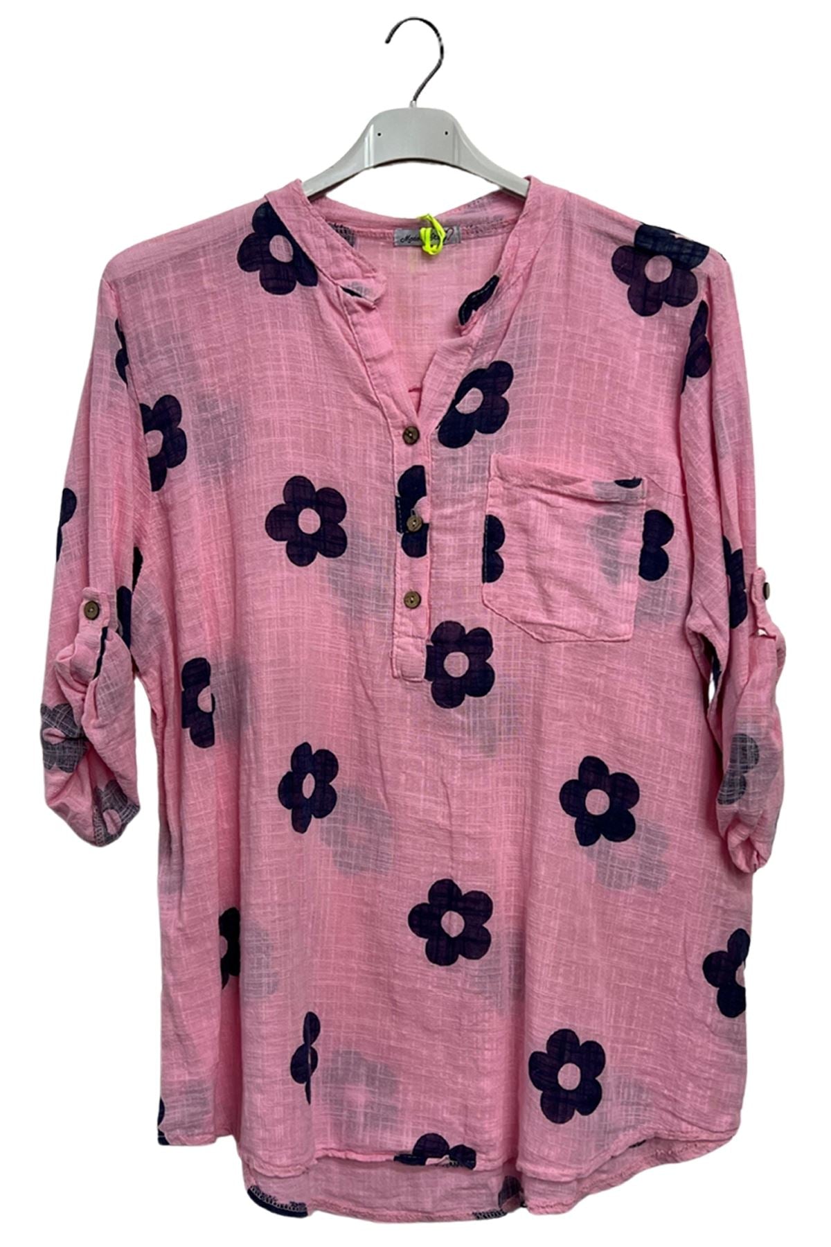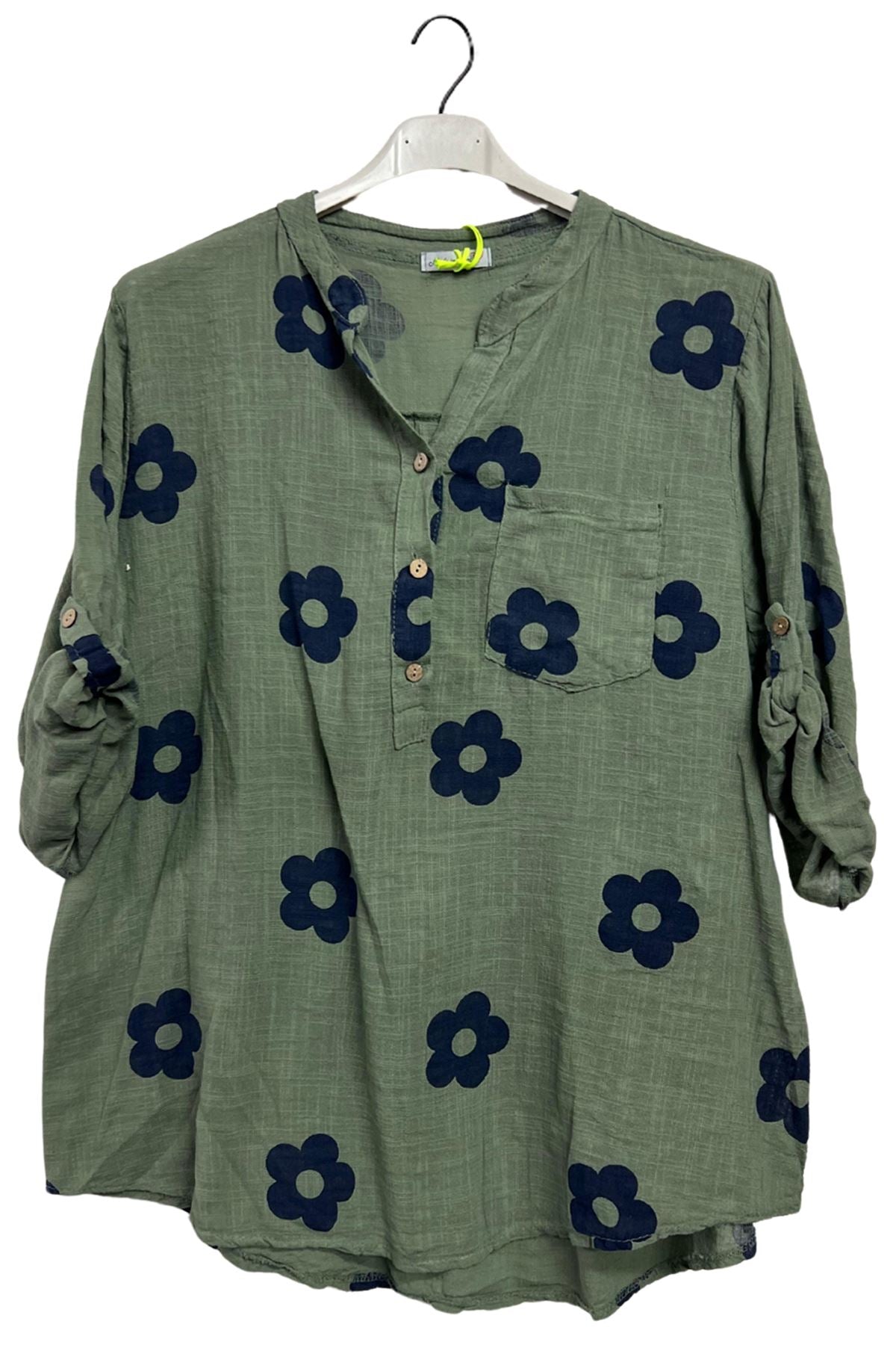 Elevate your casual wardrobe with this effortlessly stylish Italian cotton blouse, designed for plus-size women who appreciate both comfort and elegance. Crafted from lightweight, breathable cotton, this top is perfect for spring and summer days, keeping you cool while exuding charm. The delicate floral print adds a touch of femininity, while the buttoned neckline and classic collar create a polished yet relaxed look. Featuring long sleeves with a roll-up option, it allows for versatile styling—wear them down for sophistication or rolled up for a laid-back feel. The single chest pocket enhances the design with a functional yet stylish touch. Designed for a loose, relaxed fit, this blouse flatters all body types, making it ideal for pairing with jeans, linen trousers, or skirts. Whether you're heading to a casual brunch or a weekend getaway, this blouse offers the perfect blend of style, comfort, and effortless Italian fashion.
