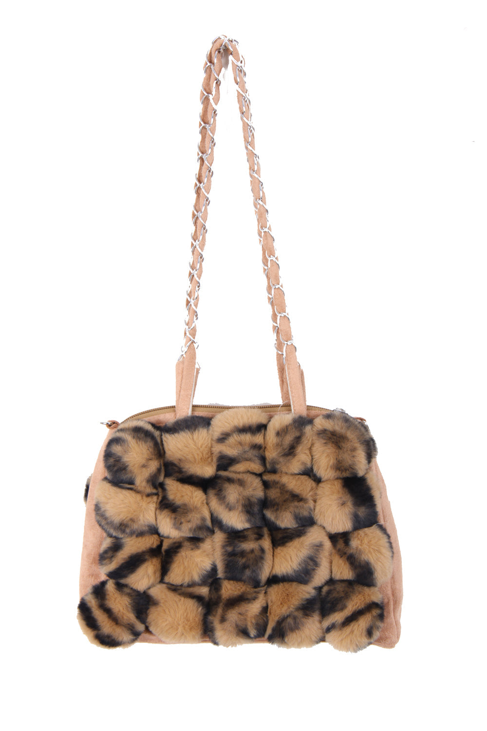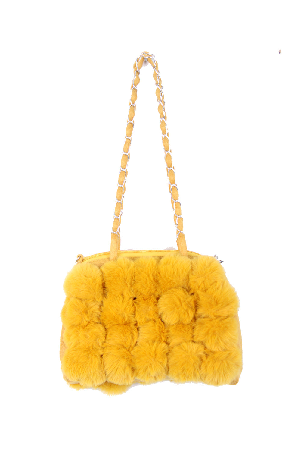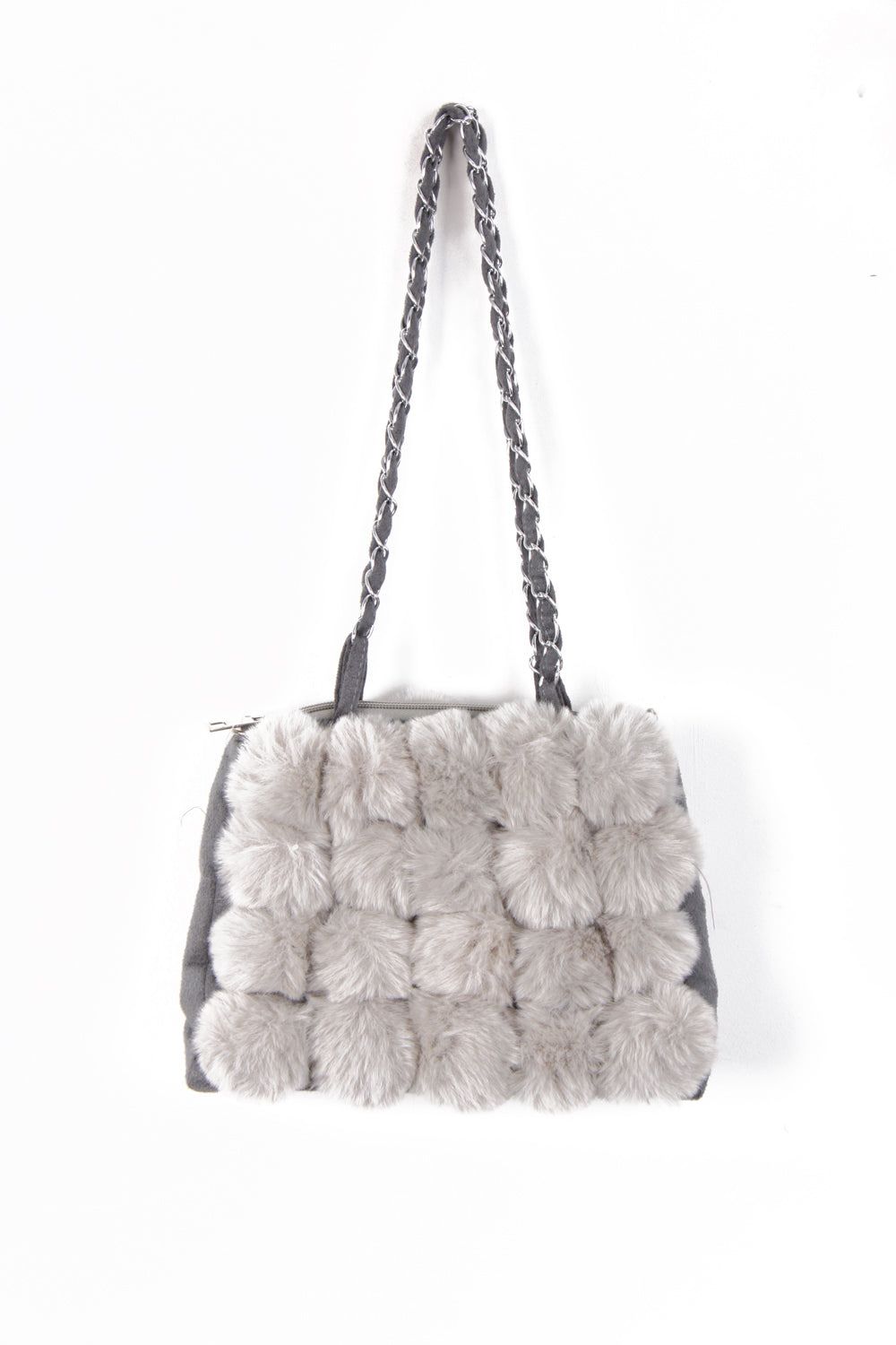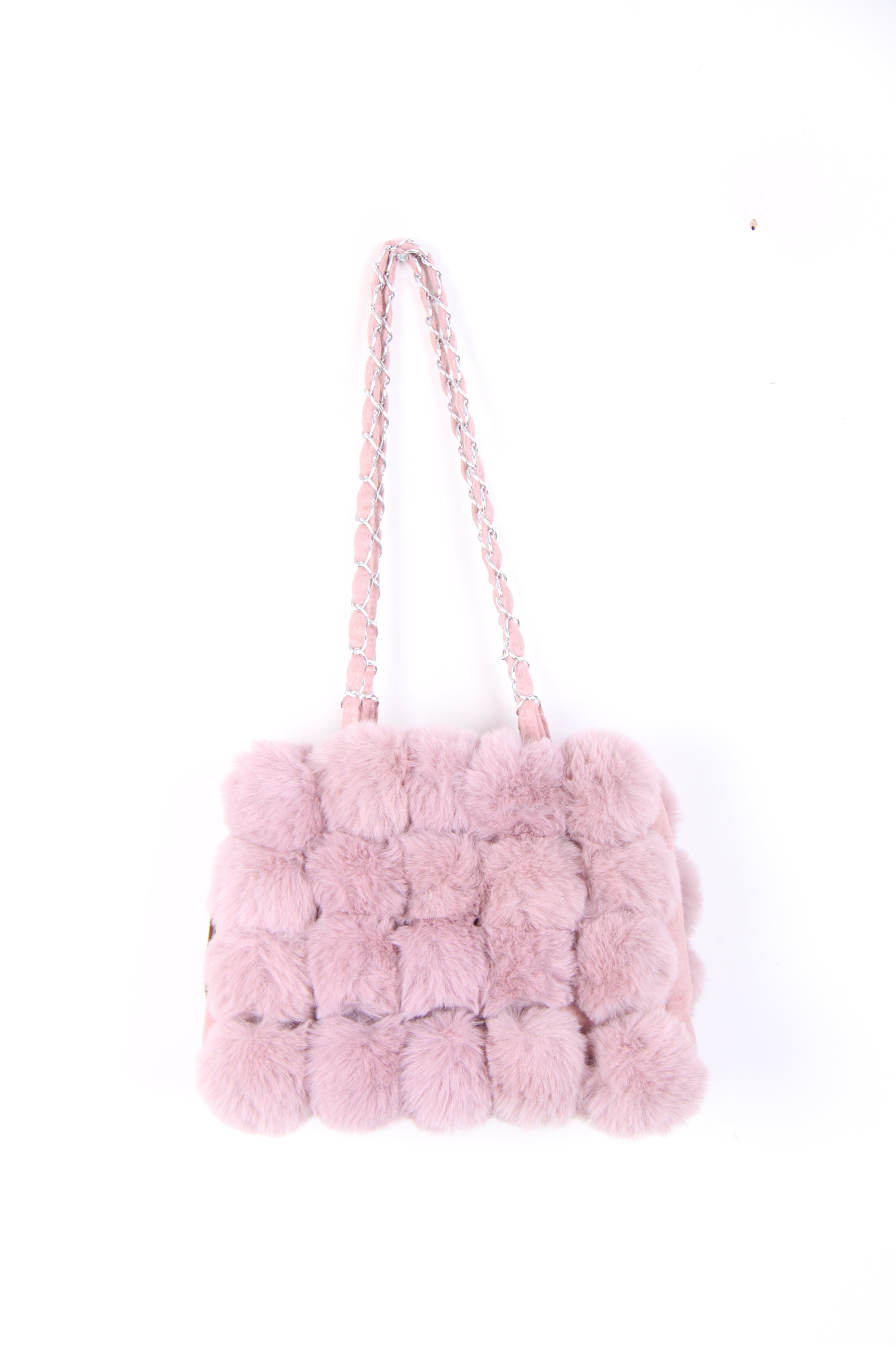 Fluffy Faux Fur Pom Pom Chain Shoulder Handbag