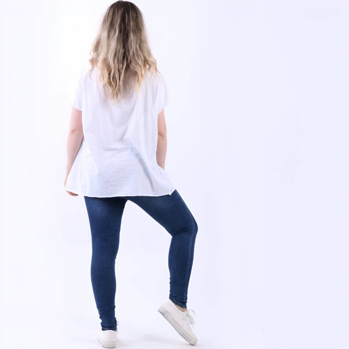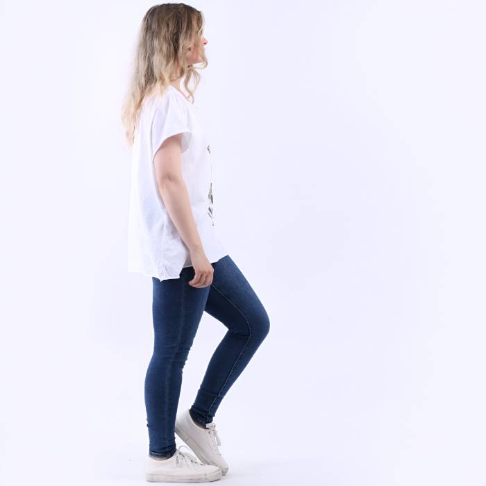 For ladies who cherish Italian casual fashion, this cotton t-shirt with glittery skull print is a standout piece. The short sleeves and relaxed baggy fit ensure comfort, while the bold print adds a touch of playfulness. Pair it with denim for a cool, laid-back appearance.