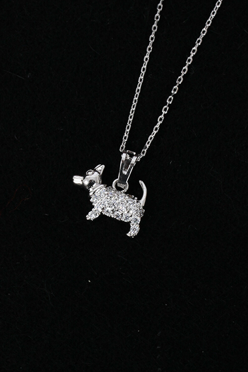 Mini Dog Cubic Zirconia Necklace & Earring Sets in Silver