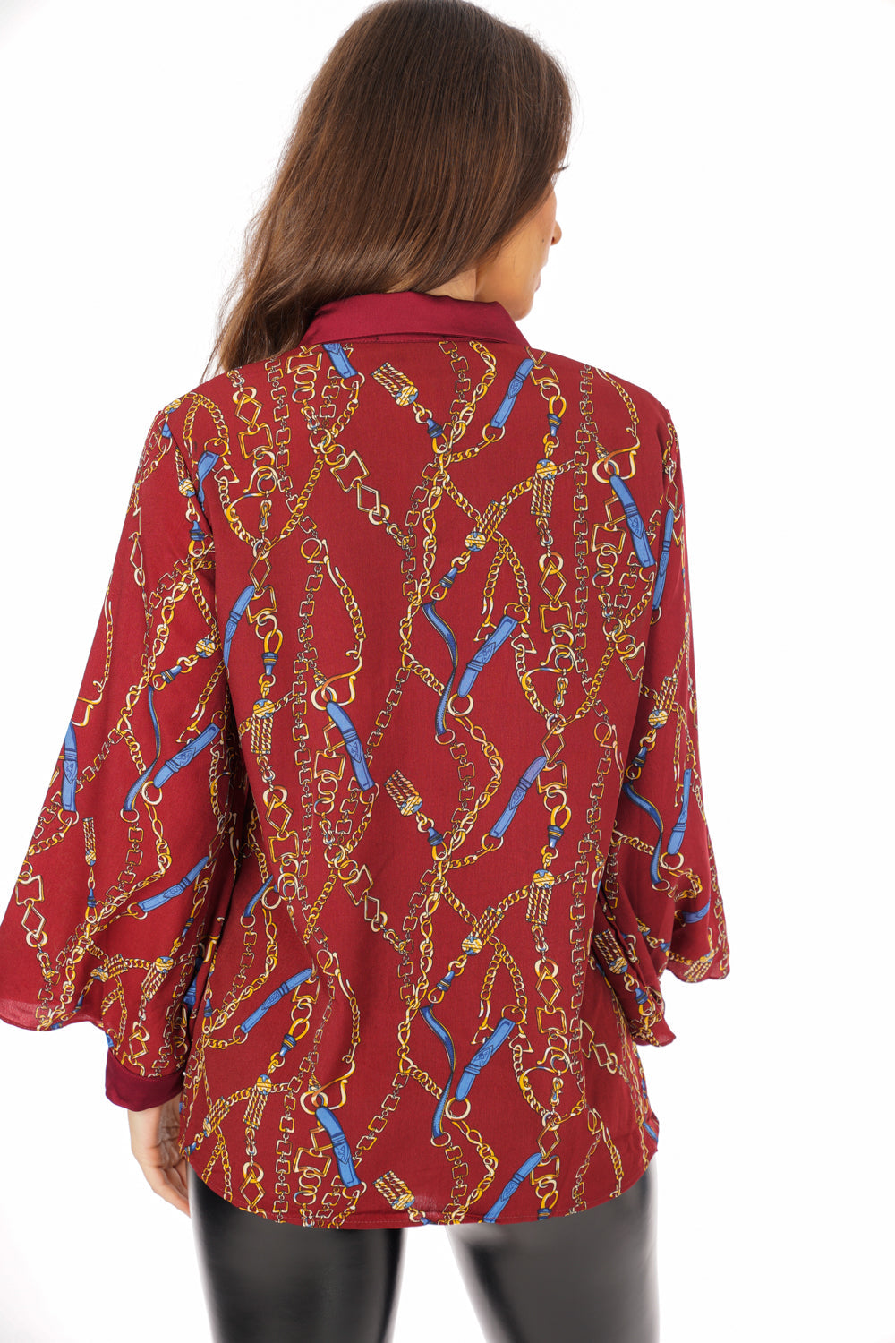 Turn heads in the Shirt is a bold piece that speaks of luxury and attitude. Featuring an eye-catching chain and scarf-inspired print, this shirt blends classic elegance with a modern oversized silhouette. The silky fabric drapes effortlessly for a flowy, flattering fit. With its button-down front and structured collar, it brings a touch of sophistication to your everyday look. You can shop latest collection of women tracksuit online at our shop. Perfect for Oversized Chain Scarf Print Shirt pairing with trousers or denim, this statement shirt takes your style to the next level. Whether you're heading to brunch or a night out, it adds instant glamour. Comfortable yet commanding, it’s the ultimate piece for fashion lovers who like to stand out with ease and grace.