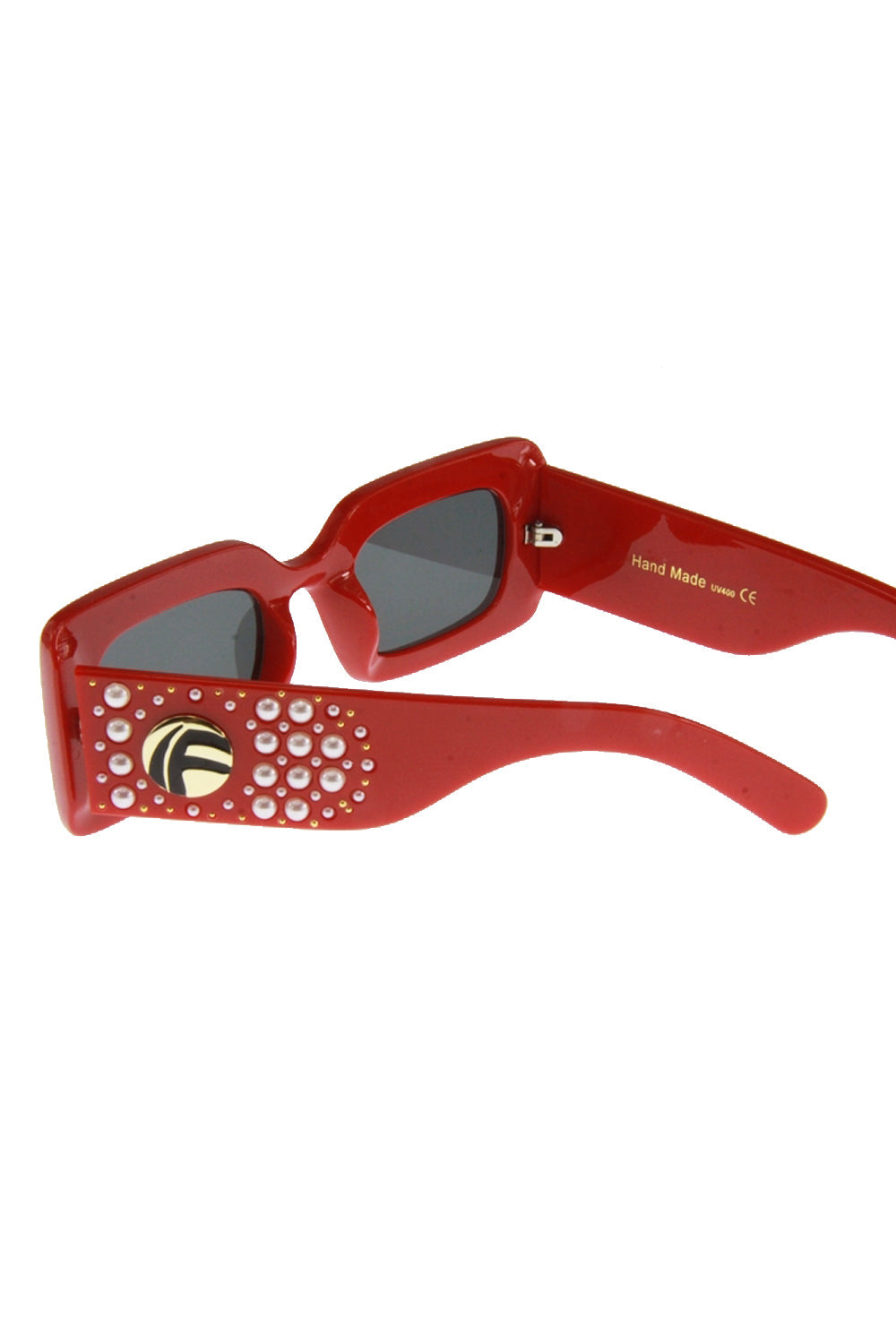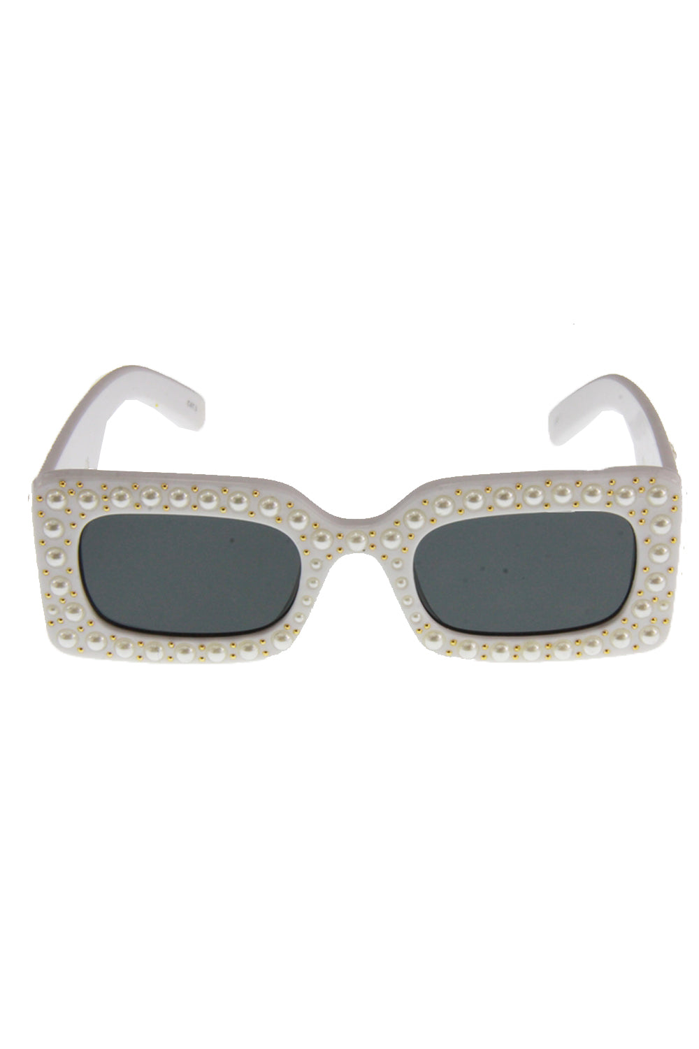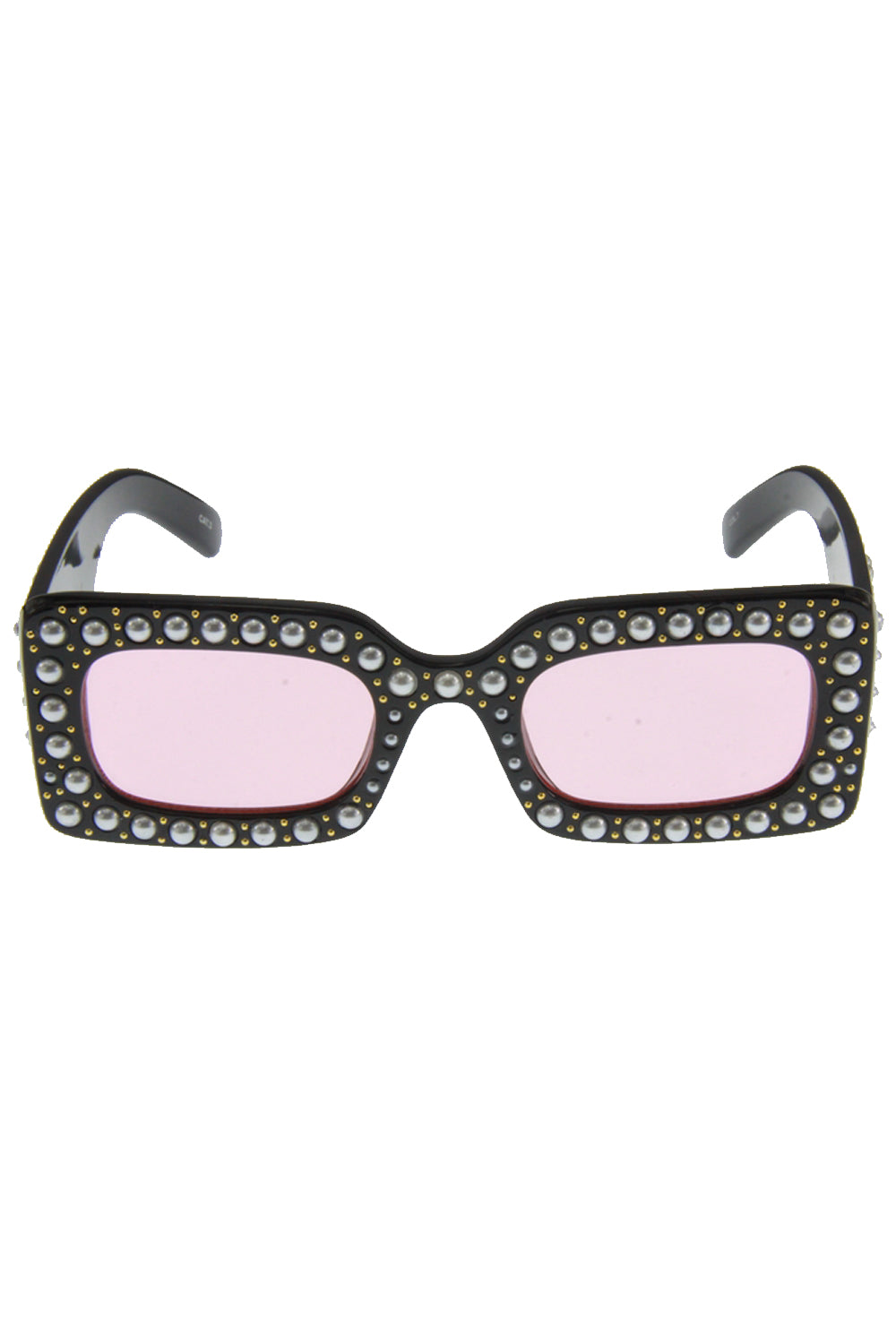 Add a touch of vintage glamour to your look with these Pearl Detail Square Plastic Sunglasses. Featuring a classic square frame embellished with delicate faux pearls, these sunglasses offer a sophisticated and eye-catching design. The dark lenses provide UV protection while the lightweight frame ensures comfortable wear. Perfect for special occasions or adding a touch of elegance to your everyday style.