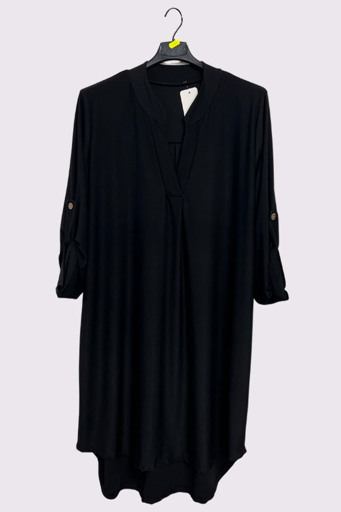 Stay effortlessly stylish with this Italian polyester oversized dress, designed for plus-size comfort and a loose, flowy fit. Crafted from lightweight, breathable fabric, this casual yet chic dress is perfect for spring and summer. The classic collared neckline adds a refined touch, while the long sleeves feature a button-up design, allowing you to adjust for comfort and style. A contemporary dip hemline enhances the flattering silhouette, offering a modern edge with graceful movement. Its plain design ensures versatility, making it easy to dress up with statement jewelry or keep it relaxed with sandals. Whether you're out for a weekend brunch or enjoying a breezy evening stroll, this oversized dress is the perfect go-to for effortless elegance. The loose fit ensures all-day ease, keeping you stylish without compromising on comfort. Pair it with sneakers for a laid-back look or heels for a sophisticated twist.