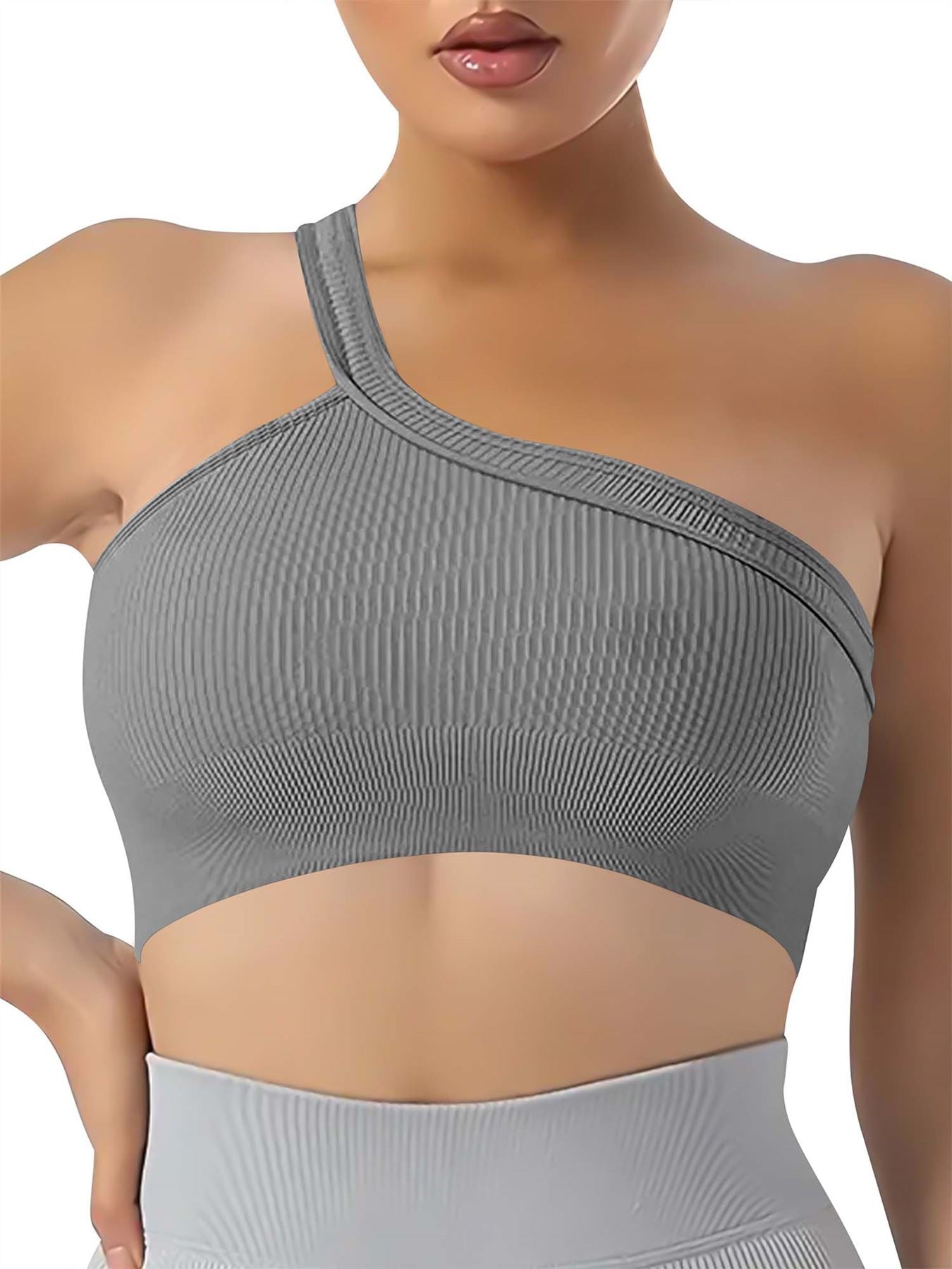 Elevate your casual style with our Nylon One-Shoulder Seamless Ribbed Bra. This strappy, plus-size marvel offers a loose fit for comfort, making it perfect for all seasons. Its plain design exudes simplicity, while the seamless ribbed texture adds a touch of sophistication. Embrace fashion effortlessly.