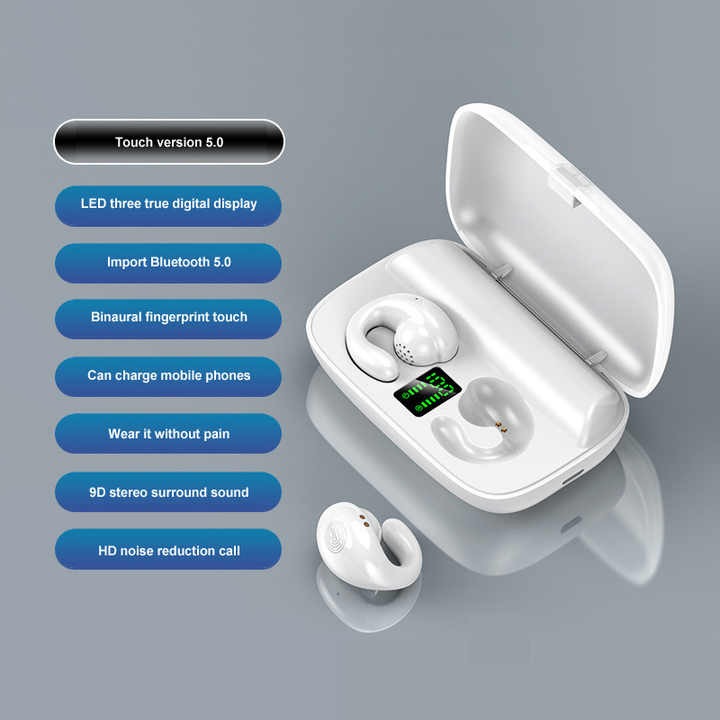 The S19 Dual Ear Hook Type Headset combines comfort, style, and performance, designed to give you a premium listening experience. With a non-in-ear design, this headset ensures that your ears stay open to ambient sounds, making it perfect for both outdoor activities and daily use. The dual ear hook design offers a secure and comfortable fit, preventing the headset from slipping during physical activities. Featuring Bluetooth 5.0 for seamless connectivity, touch control for easy operation, and a digital display that shows battery status and connectivity details, the S19 headset provides convenience and high-quality audio.