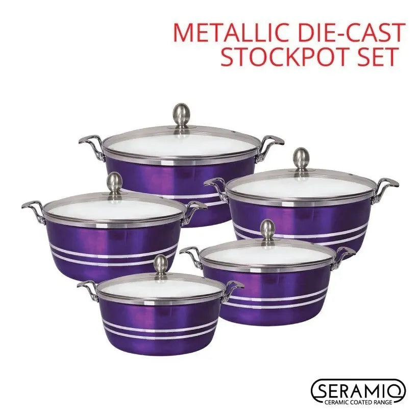Upgrade your kitchen with the SQ Professional Metallic Die-Cast Stockpot Set – Amethyst Collection and experience superior cooking performance with style! 🍲🔥