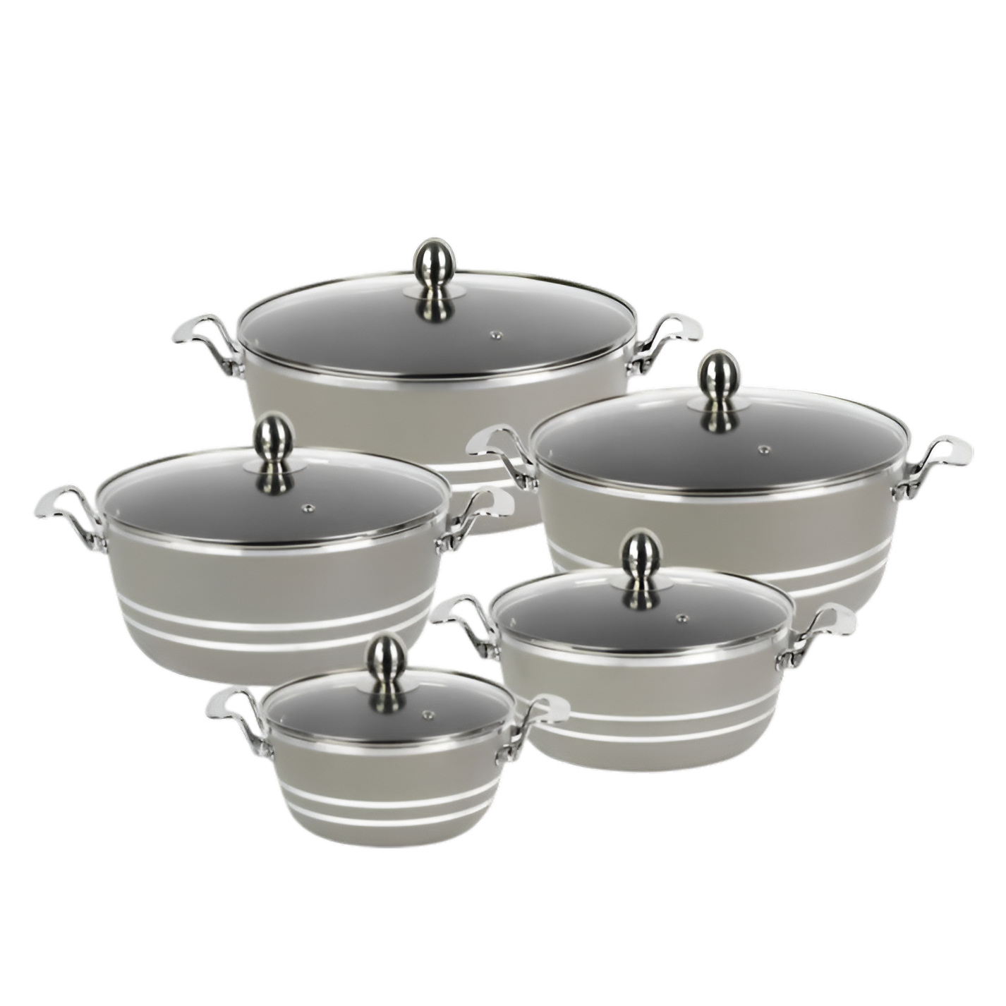 The SQ Professional Seramiq Mianra Diecast Stockpot Set of 5 in Moonstone is a premium cookware collection designed for durability and efficiency. Made from high-quality die-cast aluminum, these stockpots ensure even heat distribution for perfect cooking results. The non-stick ceramic coating allows for healthier cooking with minimal oil. Featuring heat-resistant handles and glass lids, this set is ideal for all stovetops, combining elegance with practicality.