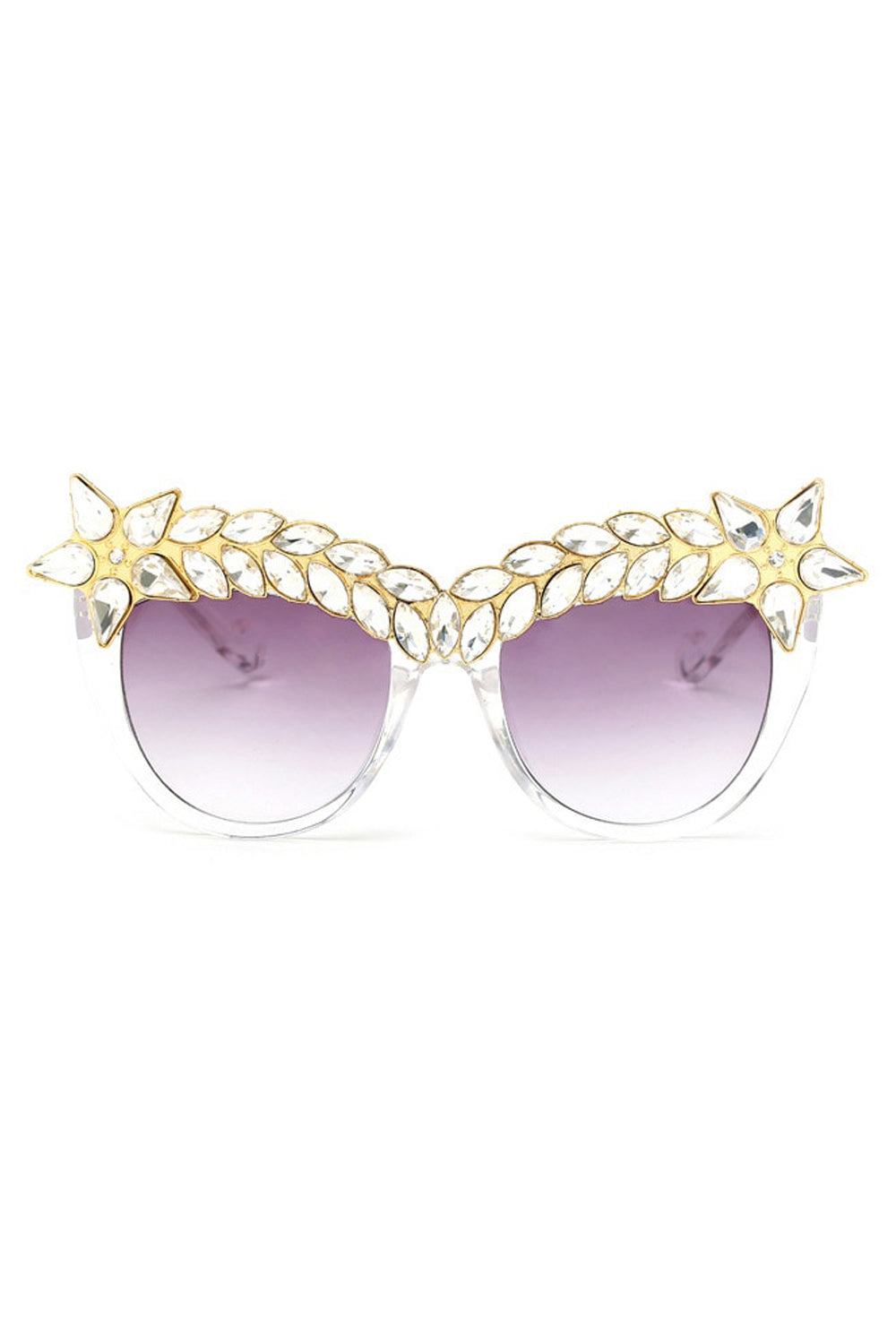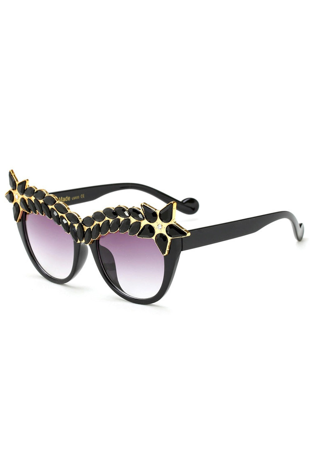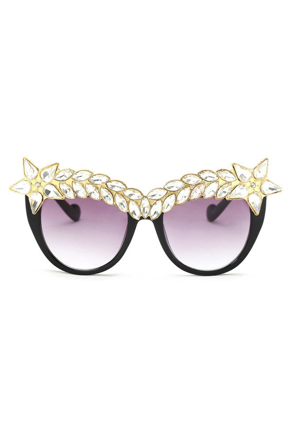 Turn heads with these Star Diamante Retro Round Cat Eye Sunglasses. A glamorous fusion of vintage charm and dazzling detail, these sunglasses feature a classic round cat eye silhouette adorned with sparkling star-shaped diamante embellishments. The gradient lenses provide UV protection while the eye-catching design adds a touch of red carpet glamour to any look. Perfect for special occasions and statement style.