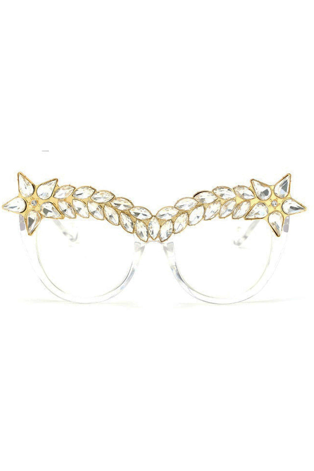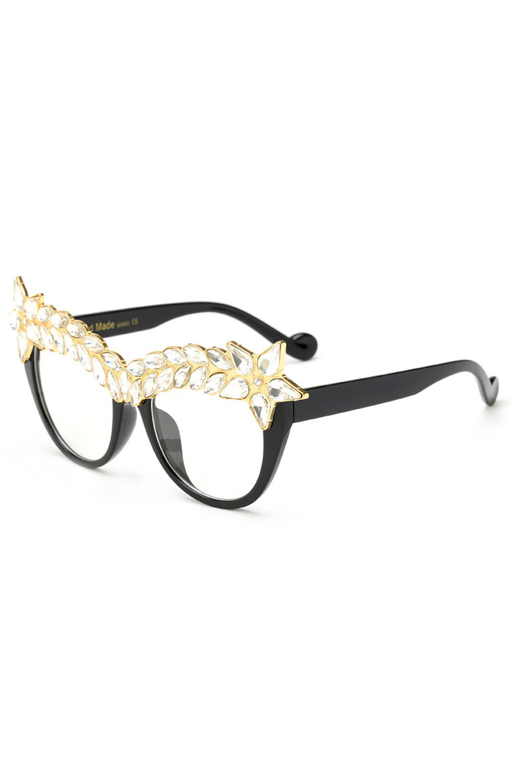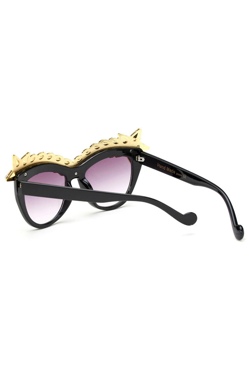 Turn heads with these Star Diamante Retro Round Cat Eye Sunglasses. A glamorous fusion of vintage charm and dazzling detail, these sunglasses feature a classic round cat eye silhouette adorned with sparkling star-shaped diamante embellishments. The gradient lenses provide UV protection while the eye-catching design adds a touch of red carpet glamour to any look. Perfect for special occasions and statement style.