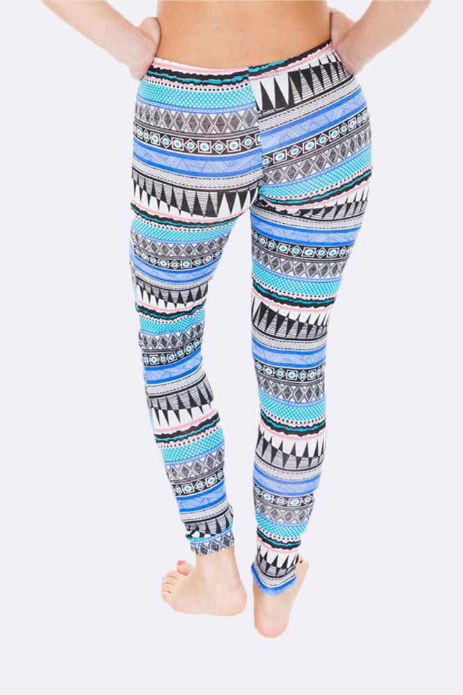 Add some colour and design element in your casual rails at the store. Here is a style staple from the range of our ladies viscose bottoms to make you earn more and more customers. Featuring elasticized viscose fabric, Aztec print in blue and a seamless stitch these Wholesale Women Full Aztec Print Blue Legging are something that every store needs. Shop Now!
